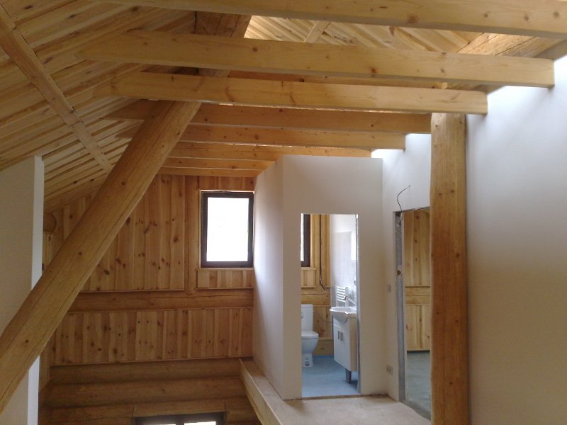 Chodba v podkroví, dřevostavba