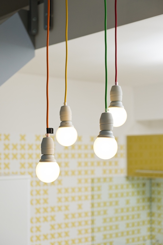 Netradiční svítidla nad jídelním pultem