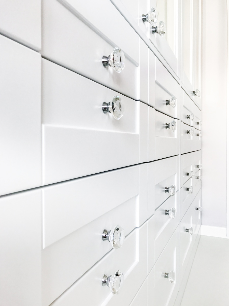Úchytky jsou sice plastové, ale nádherně odráží světlo a vypadají jako šperk.