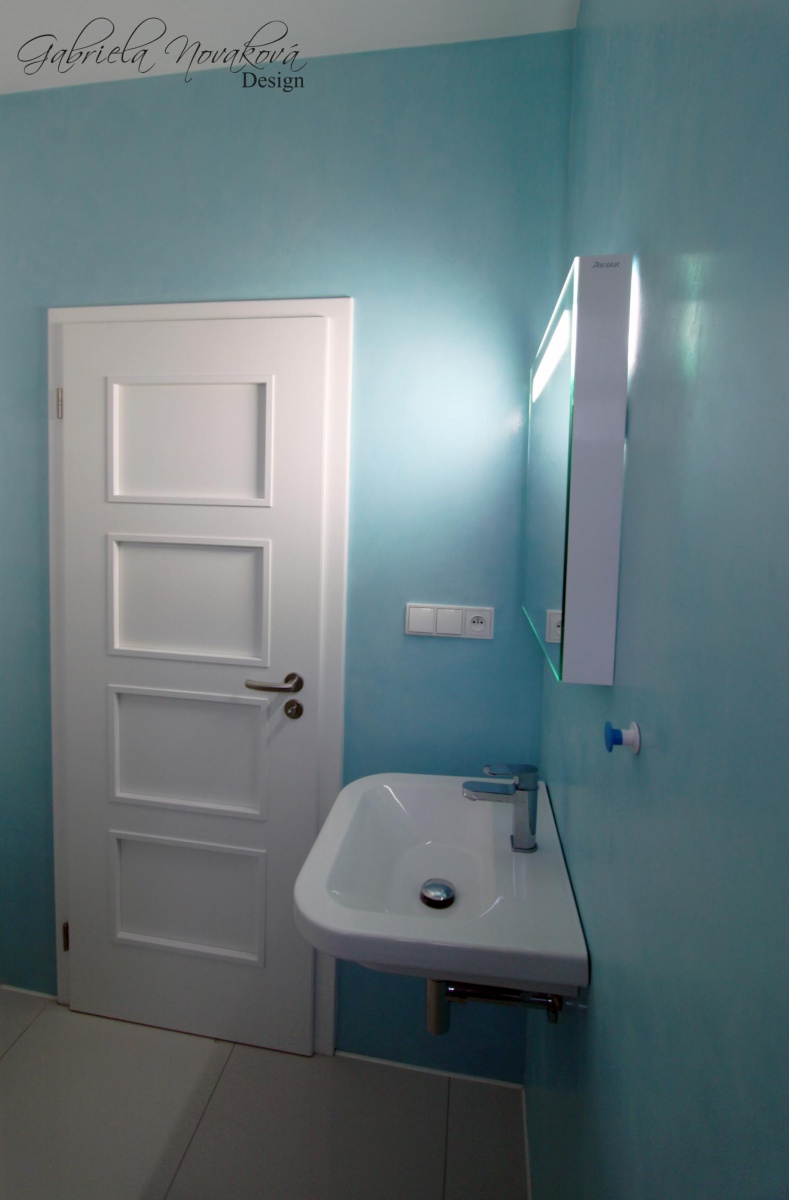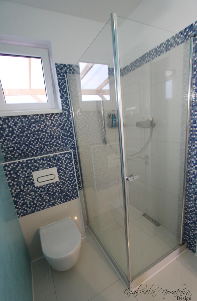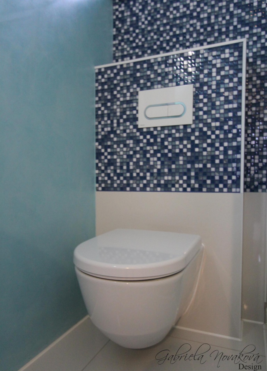Koupelna Růžové WC II.jpg Los Kachlos růžová.jpg Pohled na dveře Modre mozaika u WC Sprchový kout RAVAK Autor: Gadesign Spolupracující: Los Lachlos Datum realizace: 0