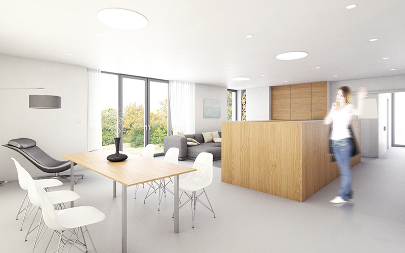 Do novostavby rodinného domu ve Zlíně Přílukách jsme navrhli kompletní interiéry. Všechny pobytové místnosti jsou skrze velkorysé prosklení bohatě prosvětleny jižním a západní sluncem, bílá a její valéry prostupují veškerými vnitřními prostorami(na stěnách, stropech, podlahách, kobercích, skříních, sedacím nábytku…) a jsou doplněny o nábytek z přírodního masivního dubu. Zdánlivě obyčejné materiály vytvářejí útulný a vzdušný interiér, který vytváří příjemný prostor pro život celé rodiny.