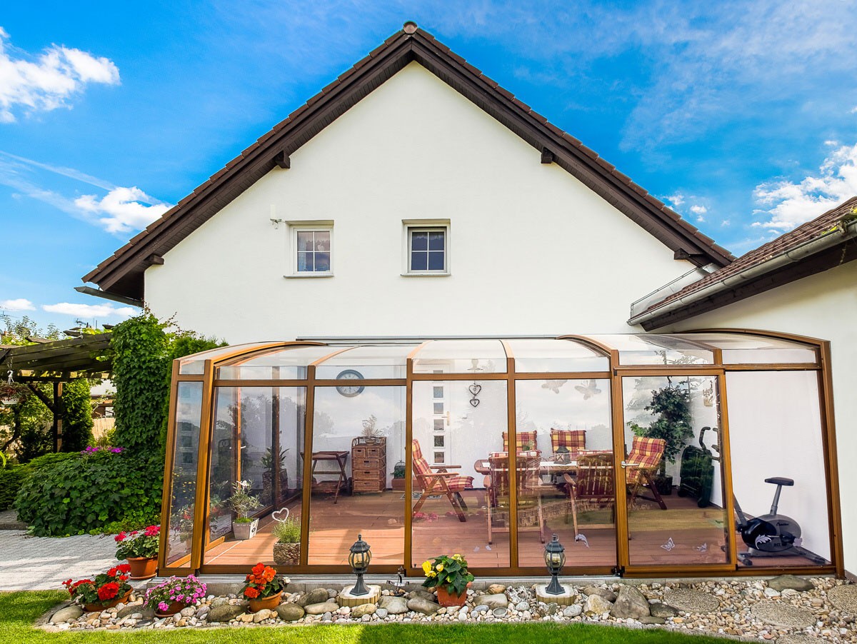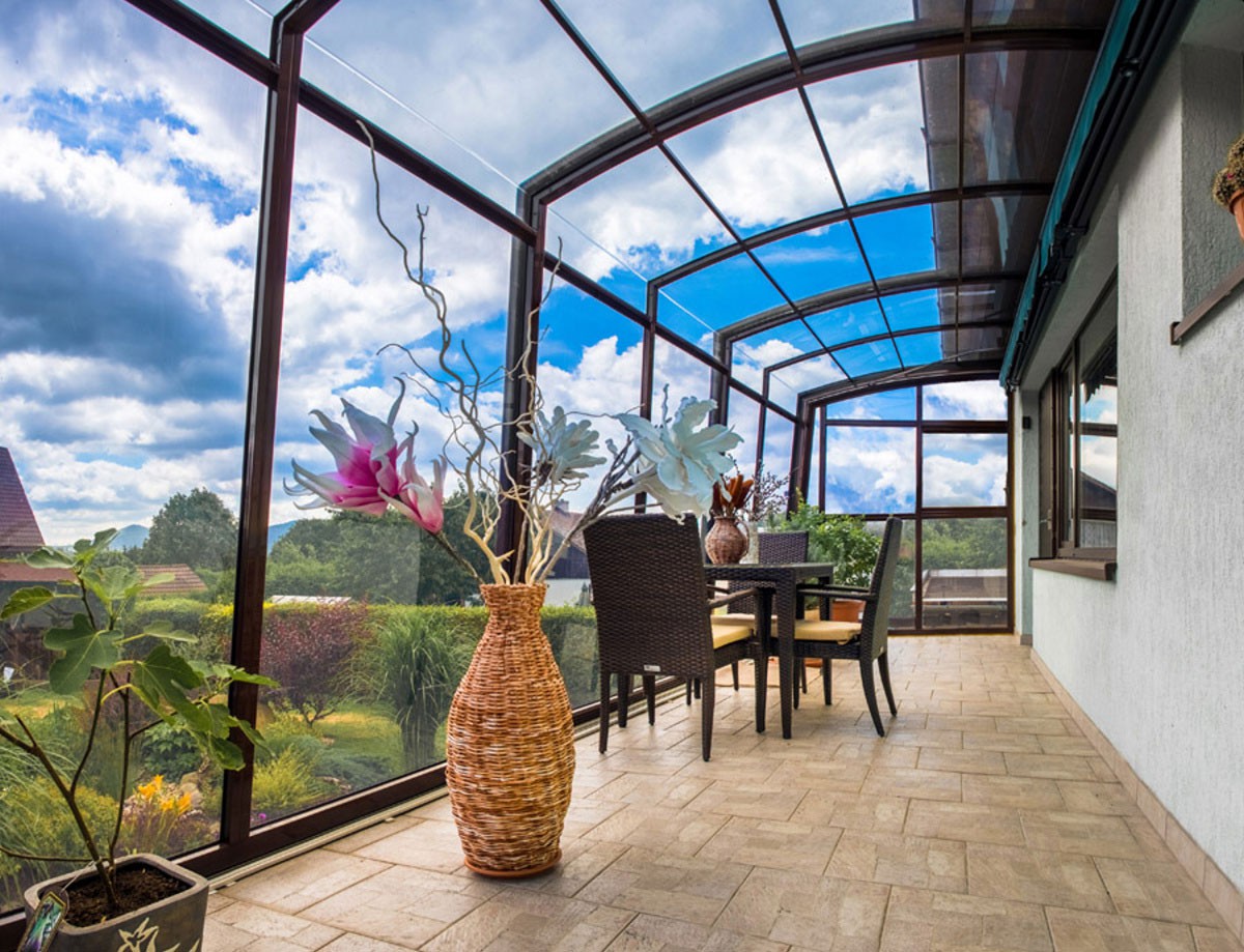 Ladné křivky zastřešení terasy Dallas působí uklidňujícím dojmem a přímo vybízí k posezení na terase za každého počasí. Plynule klesající tvar garantuje zvýšenou odolnost vůči sněhu, proto je vyhledávaným řešením pro horské chaty a penziony. zdroj: www.albixon.cz