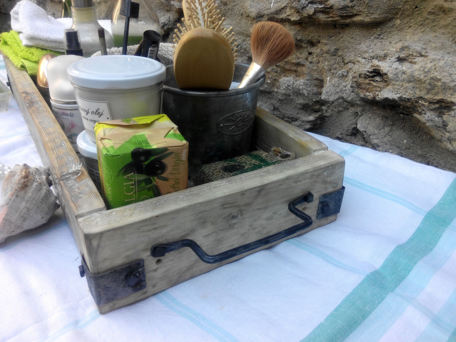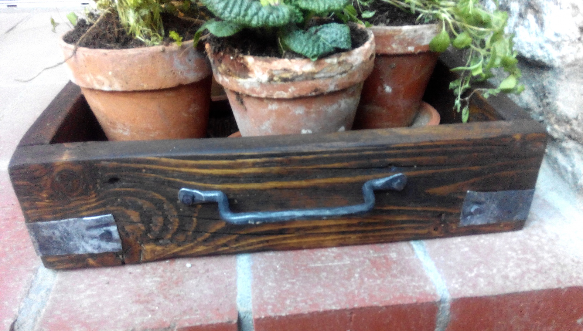 Tácy - boxy - staré dřevo zpracované kartáčováním, broušením, olejováním, voskováním, zažehlením. Všechny kované části jsou vyrobeny ručně, voskované, zažehlené, pro exteriér je natíráme kovářskou barvou.