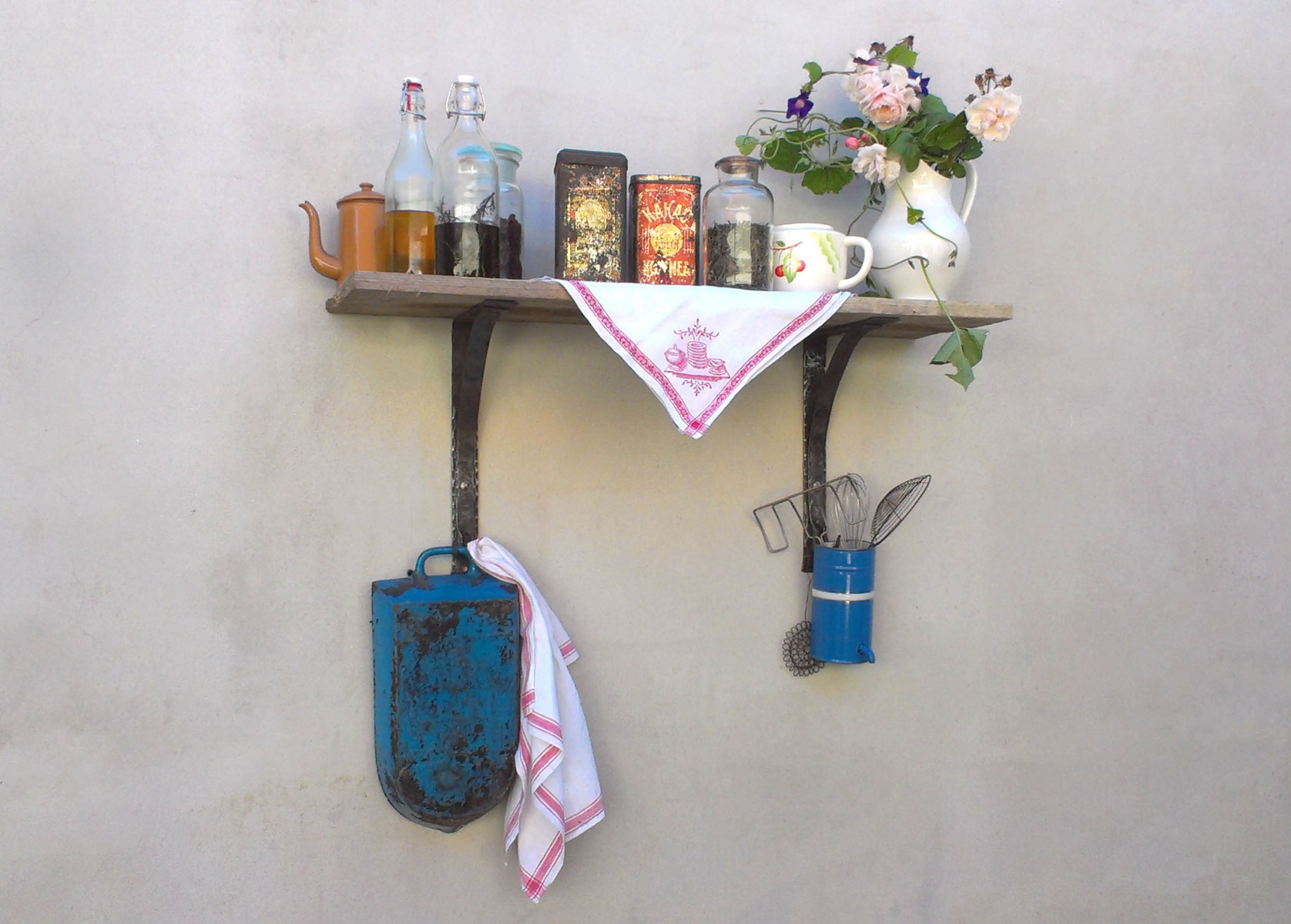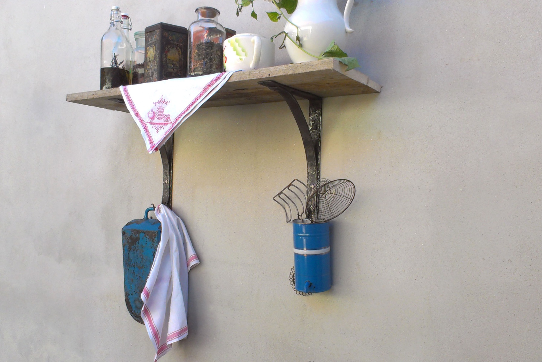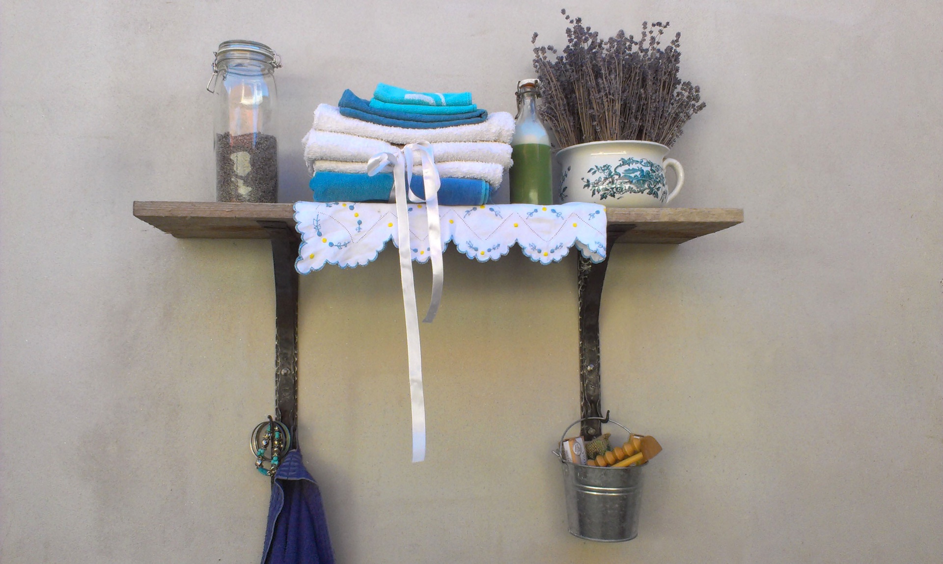 Police vyrábíme ze starého dřeva kartáčováním, broušení, olejováním, voskováním, zažehlováním. Ocelové části jsou všechny vyrobené ručně včetně překovaných hlav šroubů. Vyrábíme na míru.