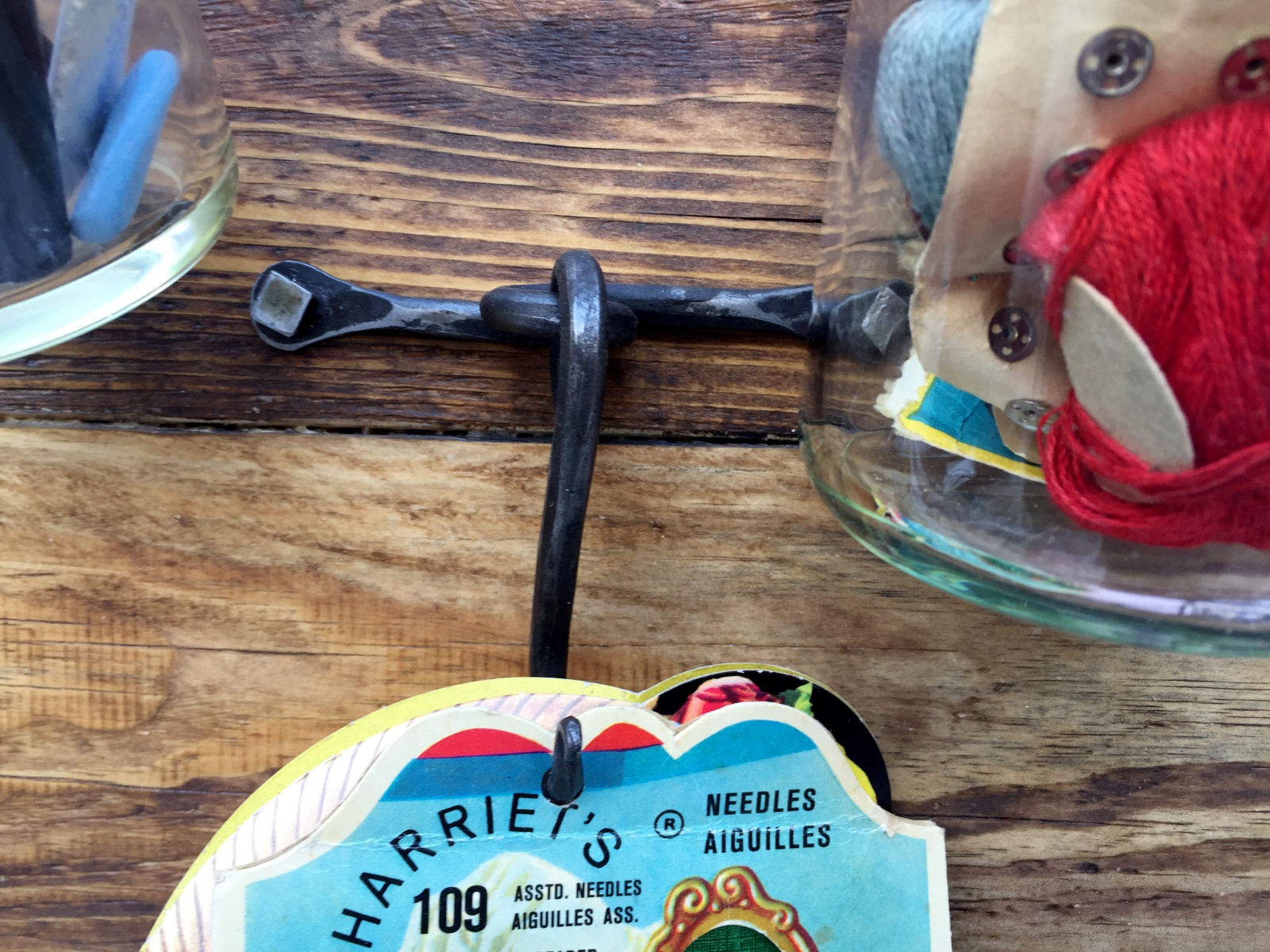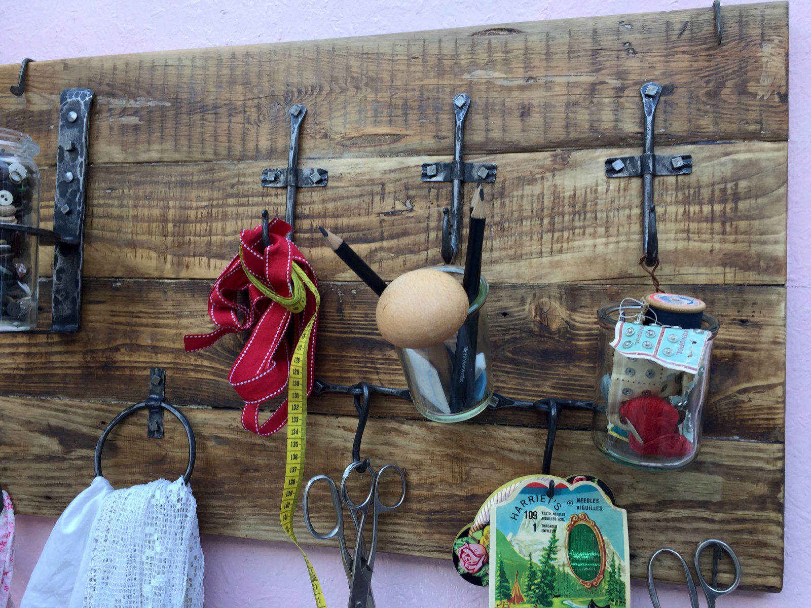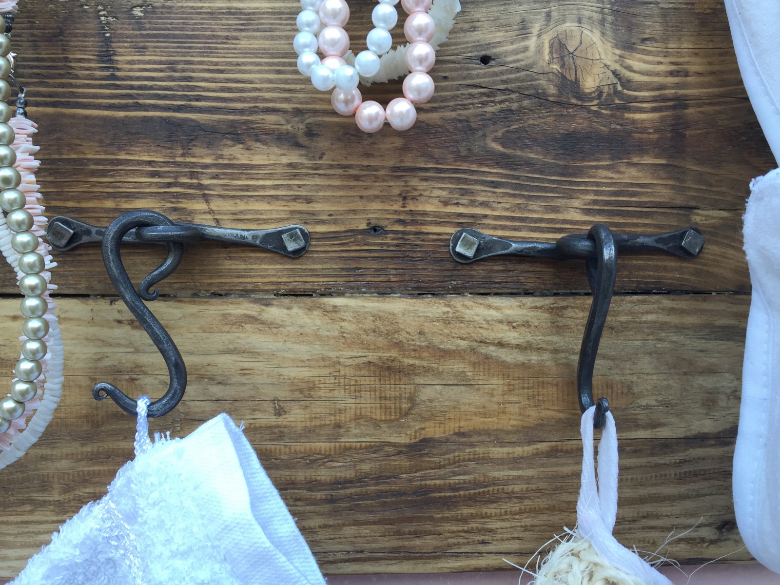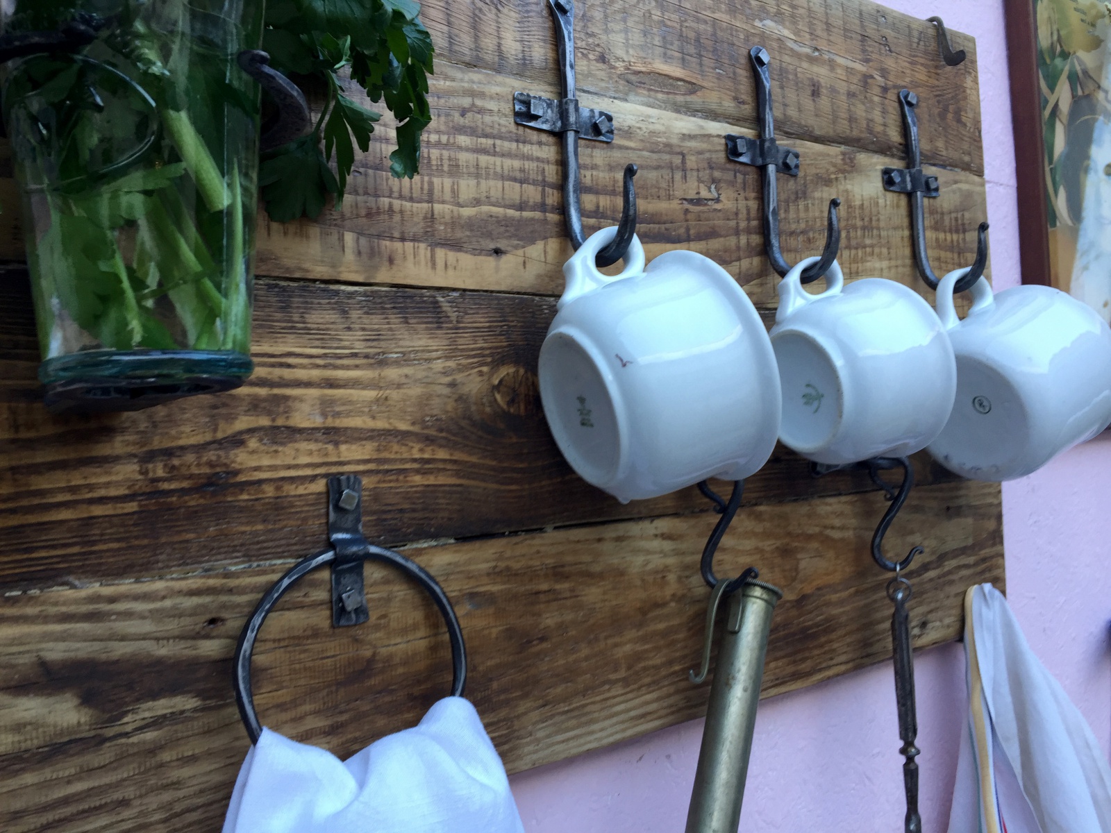 Věšák s držákem a vázu a kruhem na šátky.