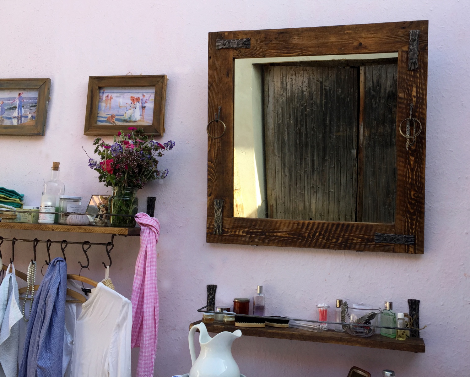 Zrcadlo Workhop 1 - staré dřevo, ruční kované prvky, nekonečně mnoho velikostí.