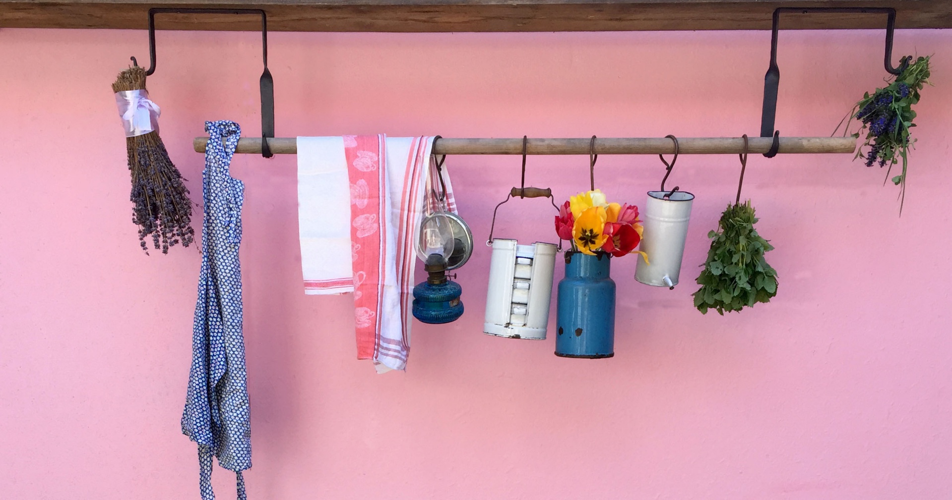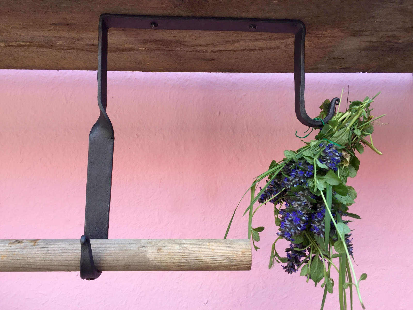 Kovaný hák s háčkem na sušení bylinek - k použití ve dvojici