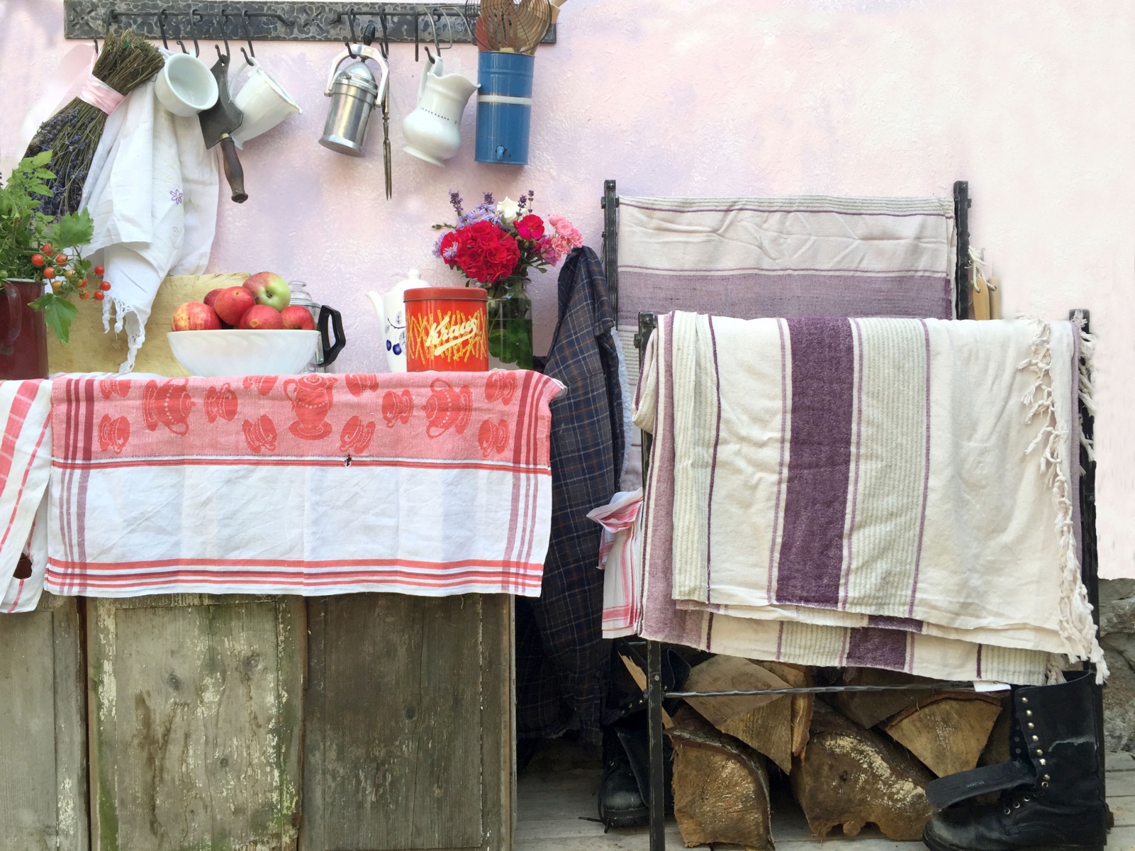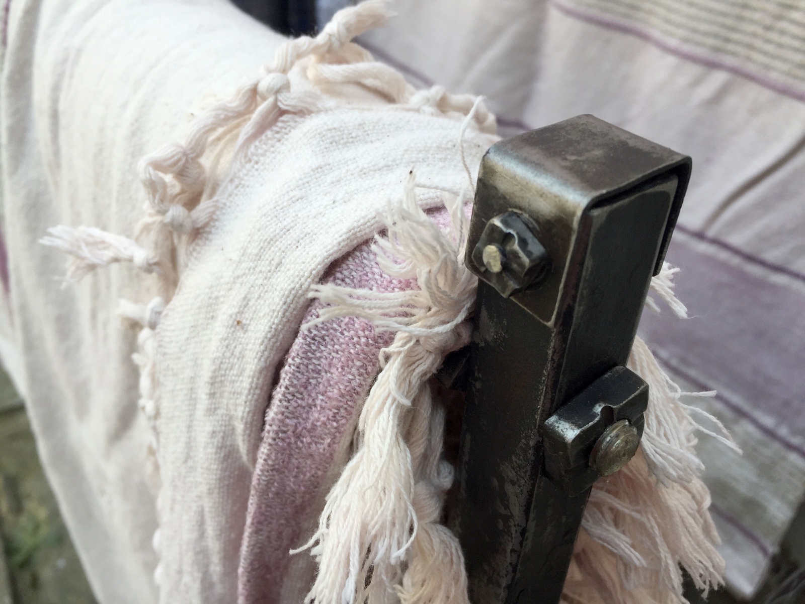 Volně stojící sušák v kombinaci běžné a nerezové oceli. Rozměr na přání, zde ve velikosti 112cm - výška zadní nohy, 82cm - výška přední nohy, hloubka - 40cm, šíře - 70cm.