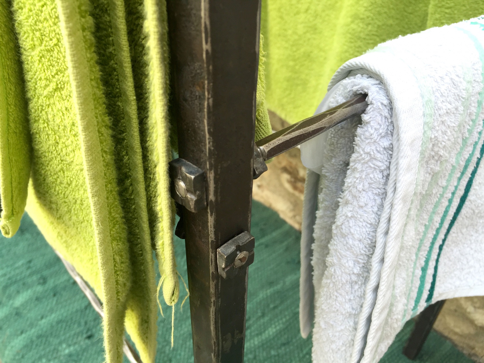 Volně stojící sušák v kombinaci nerezové a běžné oceli. Do koupelny i kuchyně.