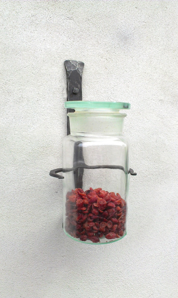 Nástěnný držák na vázu, ručně kovaná ocel.