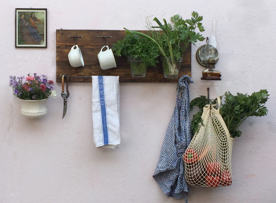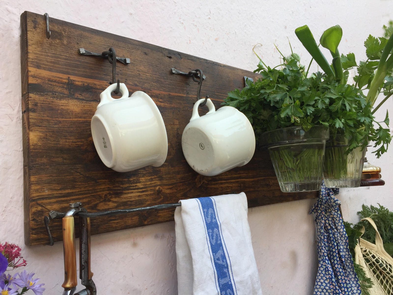 Rozměr 80x30. Broušená a voskovaná ocel. Všechny části vyrobeny ručně včetně překovaných hlav šroubů. Min. 30 let staré dřevo. Kartáčované, mnohonásobně broušené, olejované lněným olejem, voskované včelím voskem s pigmentem - nakonec zažehleno. Dodáváme včetně starých skleněných květináčů, které se již nevyrábějí. Silné, nevšední sklo. Edice je limitovaná jejich počtem - maximálně 10 kusů.