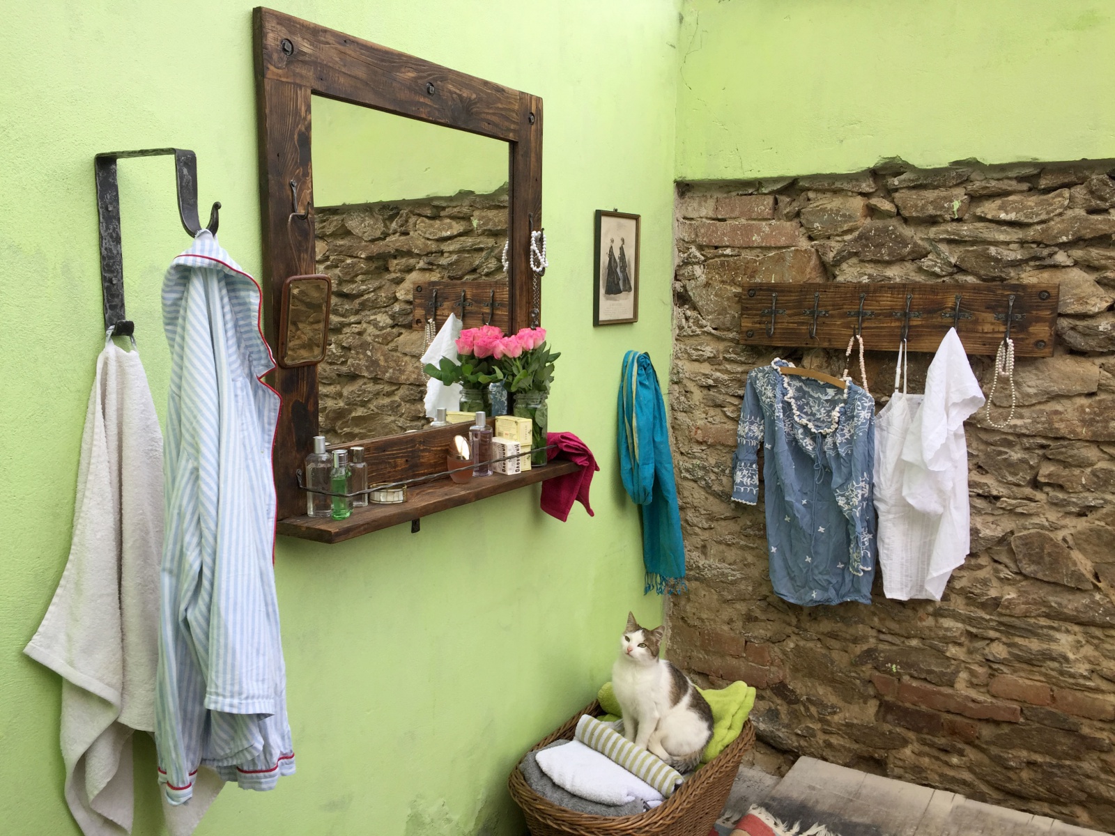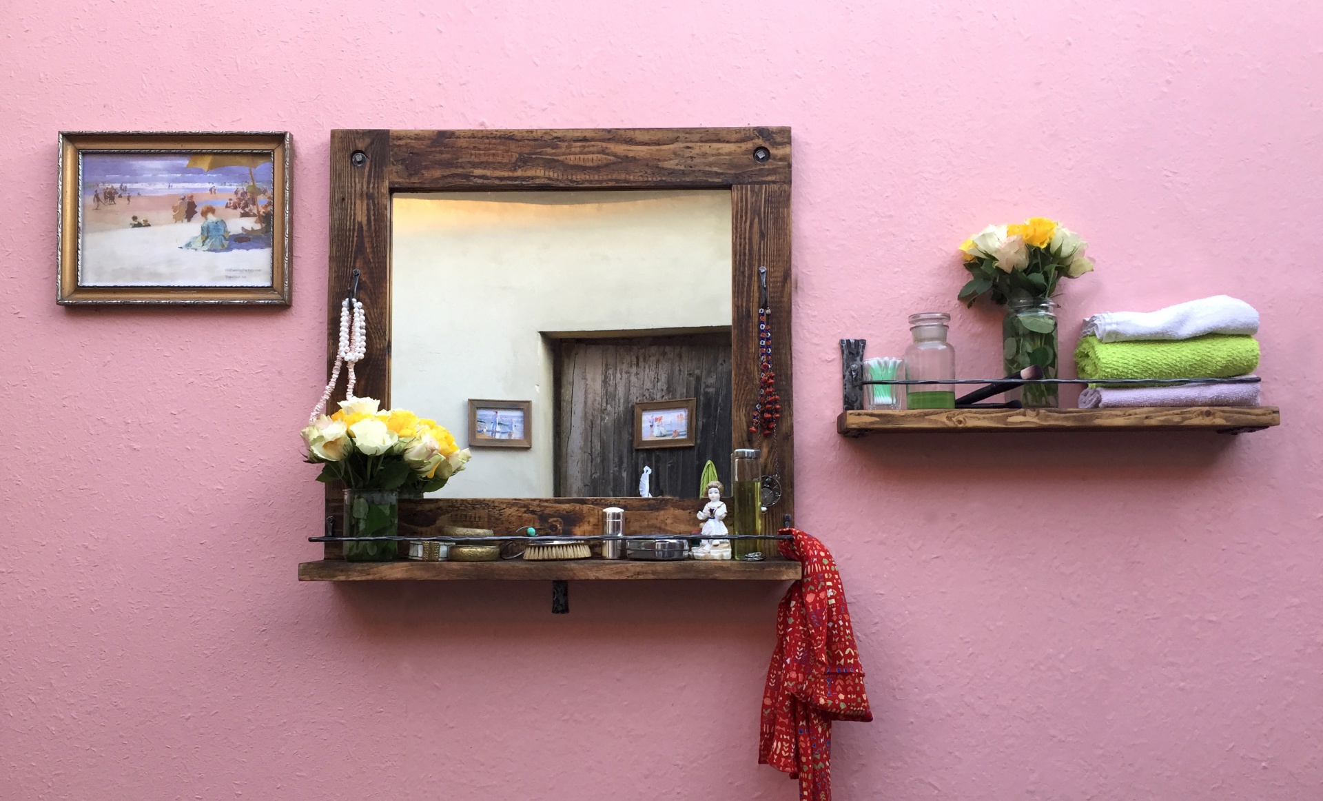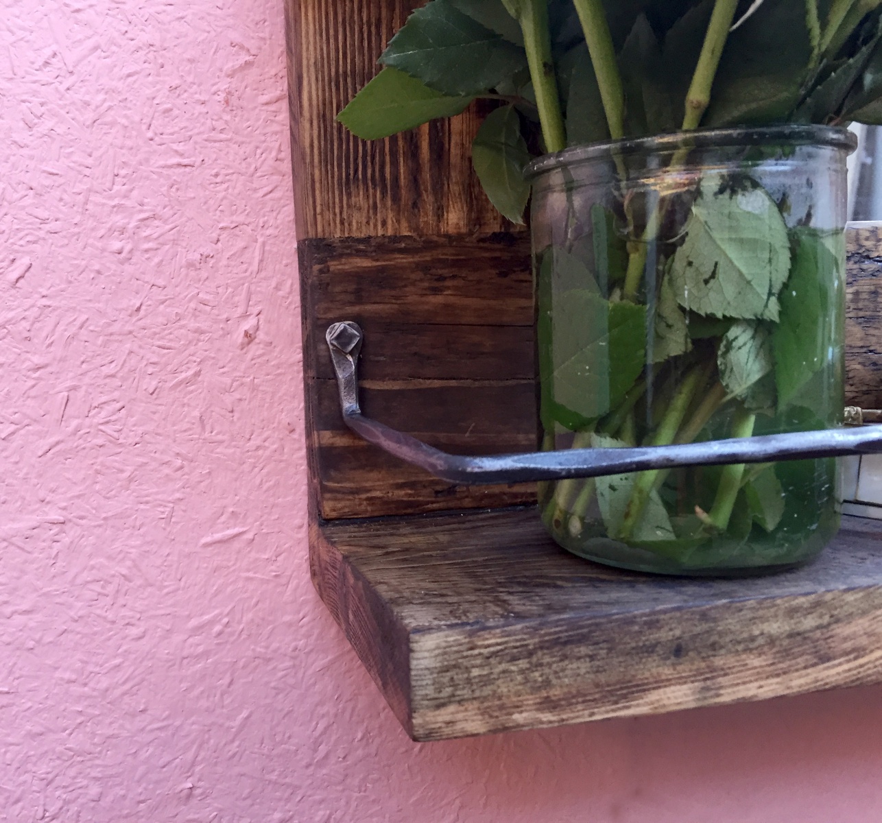 Vyrobeno ze starého dřeva kartáčováním, broušením, voskováním, olejováním a leštěním. Kované části jsou broušené, voskované, zažehlené a leštěné. Rozměr dle libosti.