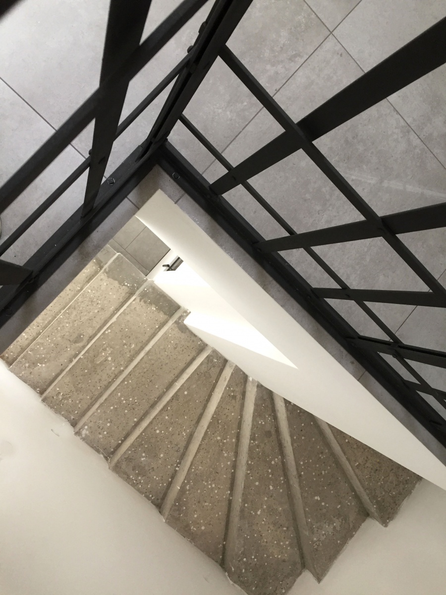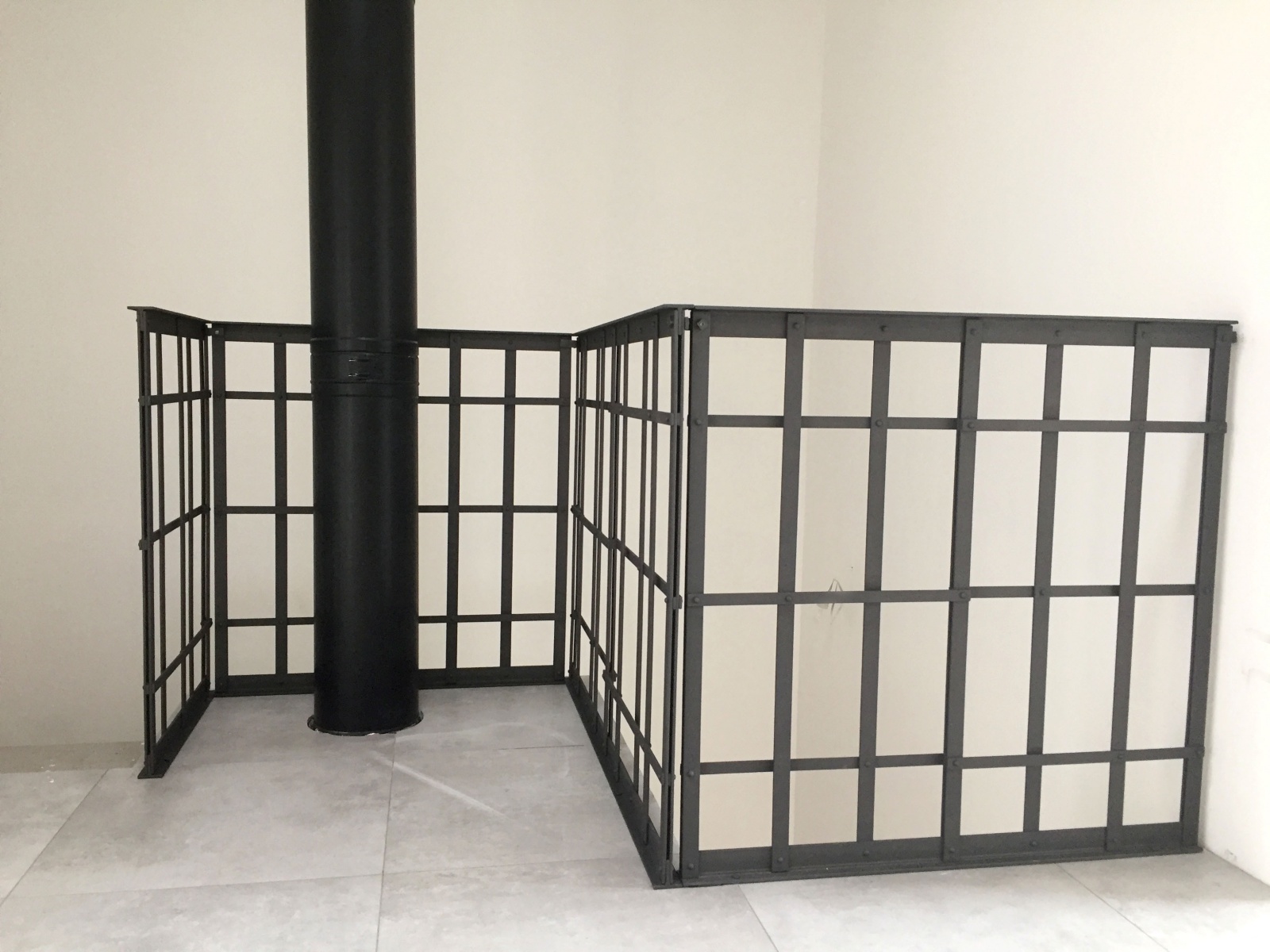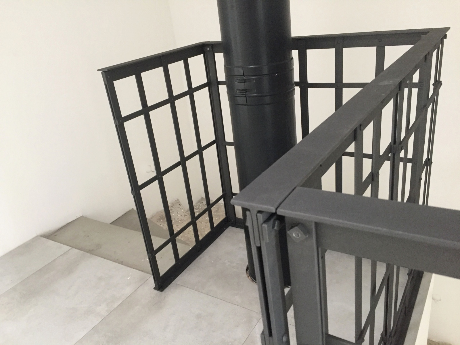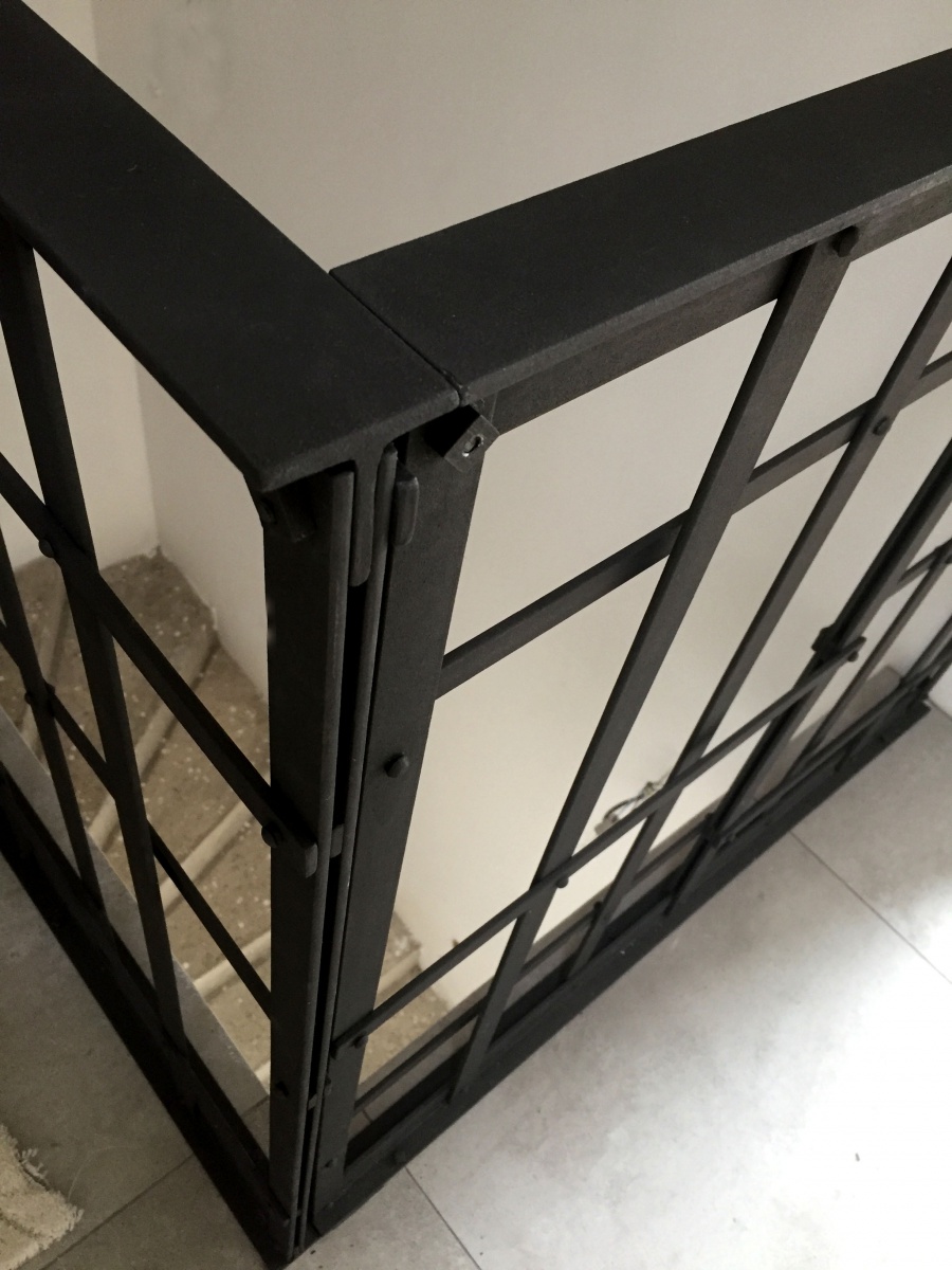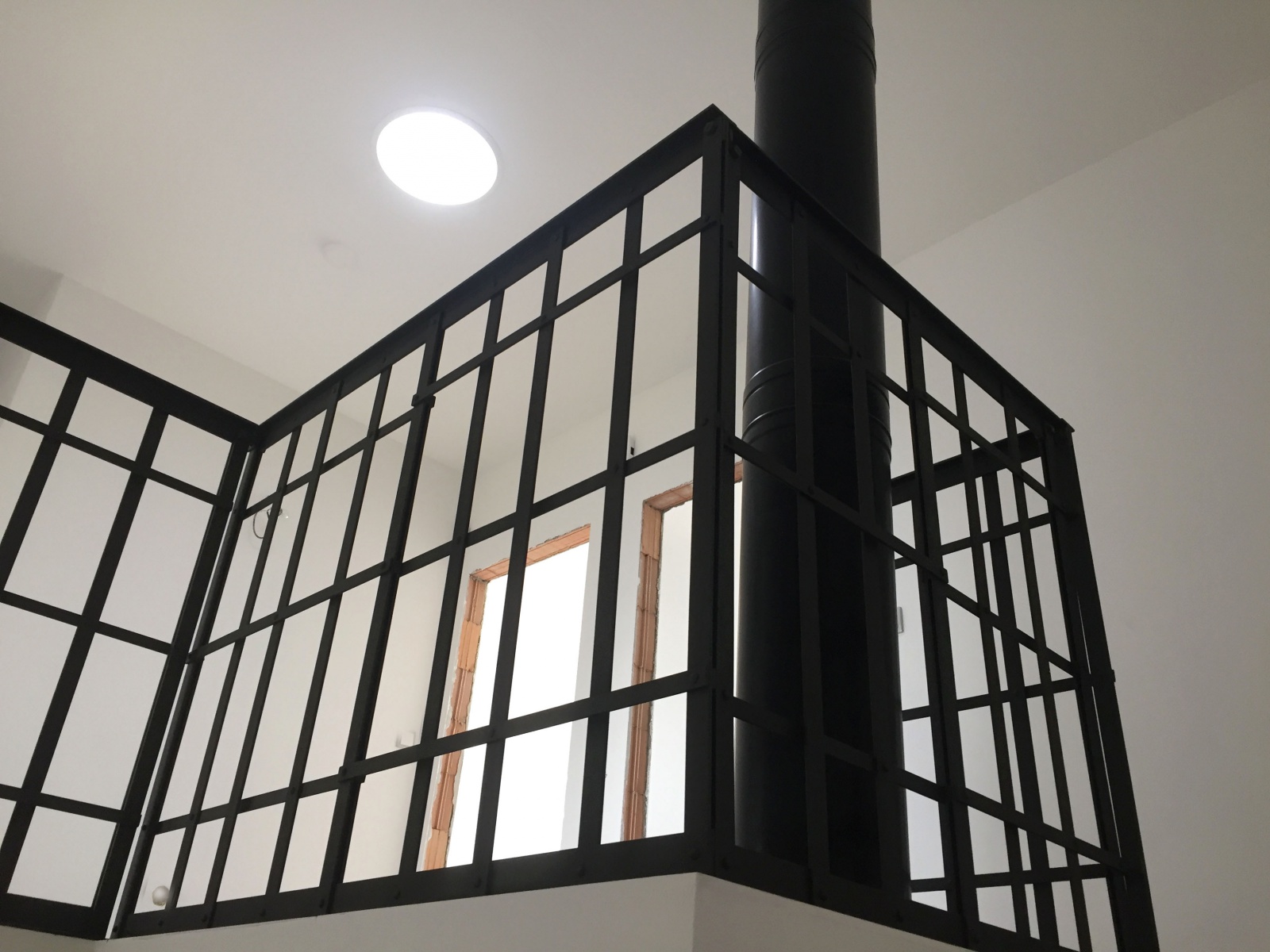 Zábradlí navržené a vyrobené pro moderní dům v Třebíči. Oboustranně pohledové, designově propojené s přiznaným technickým komínem.