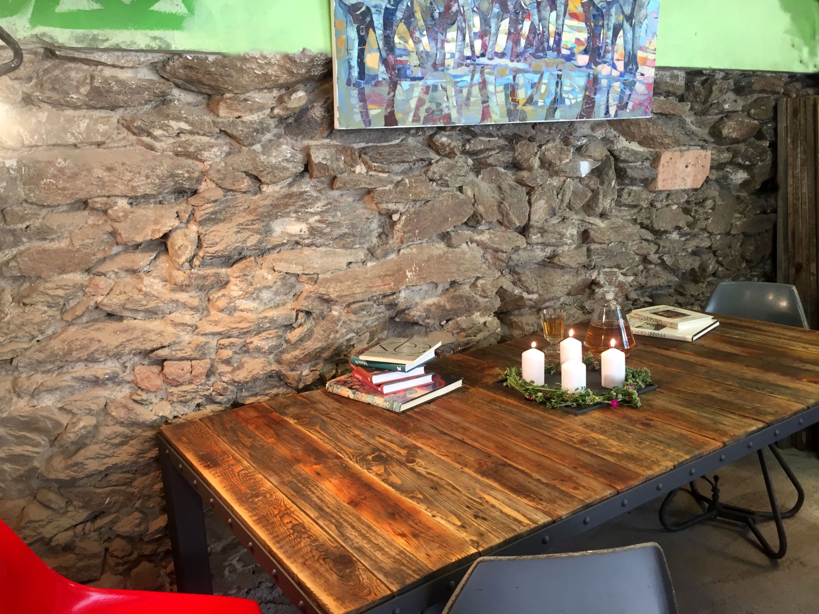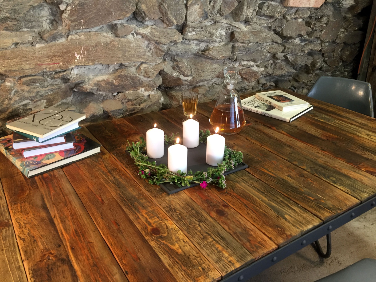 Loftable 03 - jídelní stůl s otočnou kachlí-svícnem