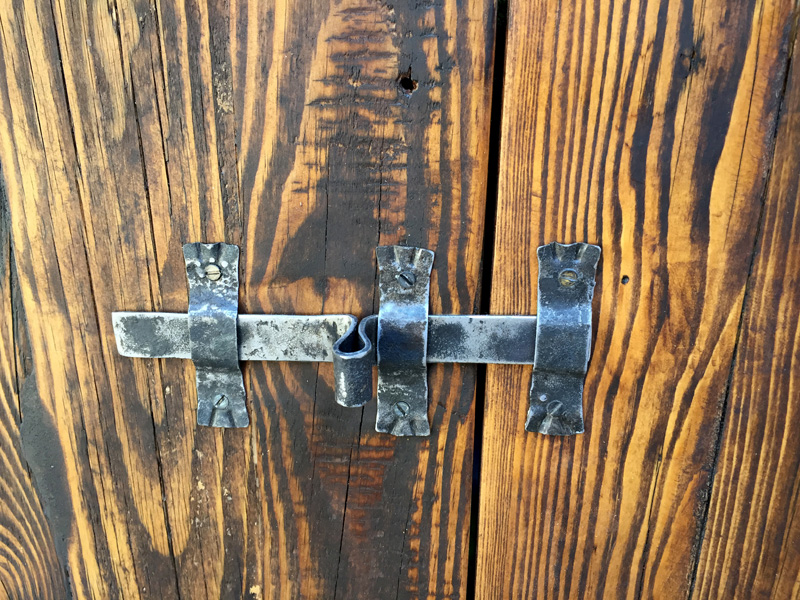 Staré užité dřevo ručně zpracované kartáčovaním, broušením, olejováním lněným olejem, voskováním včelím voskem s pigmentací. Nakonec zažehleno a zaleštěno. Tímto zpracováním ponecháváme dřevu jeho historii, ale jeho povrch je hladký a dobře se udržuje. Ocel je ručně kovaná, broušená, zažehlená a zaleštěná.