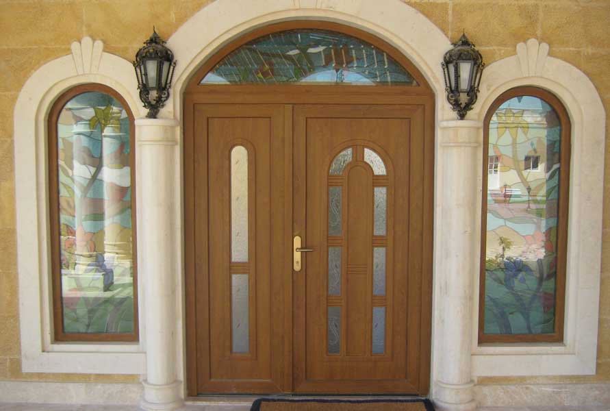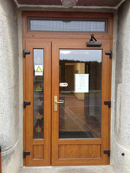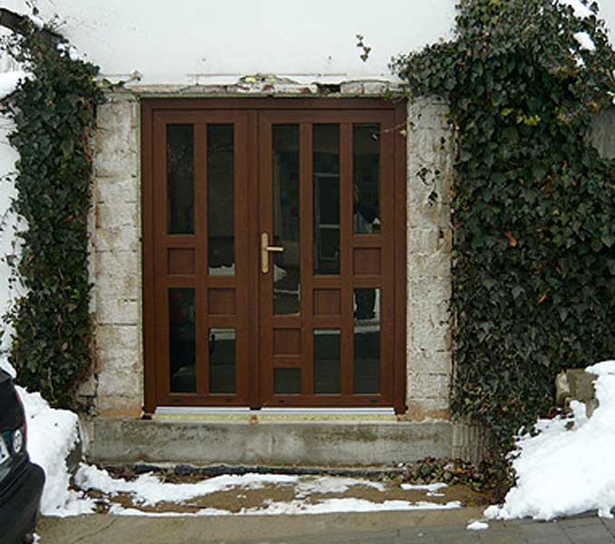 Dvojkřídlé vstupní dveře Dveře členěny konstrukčními příčkami
