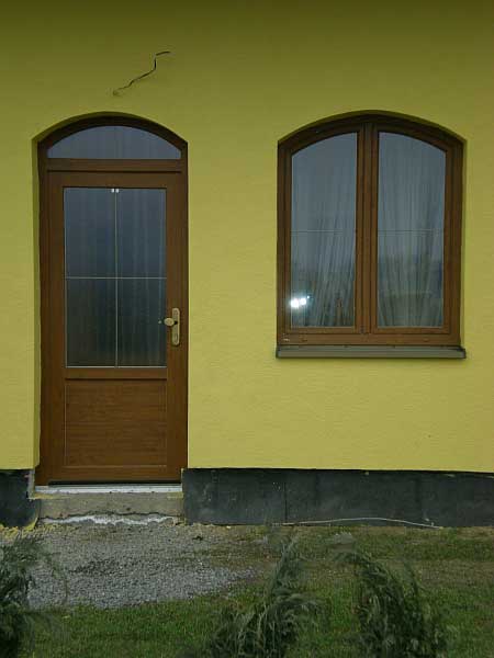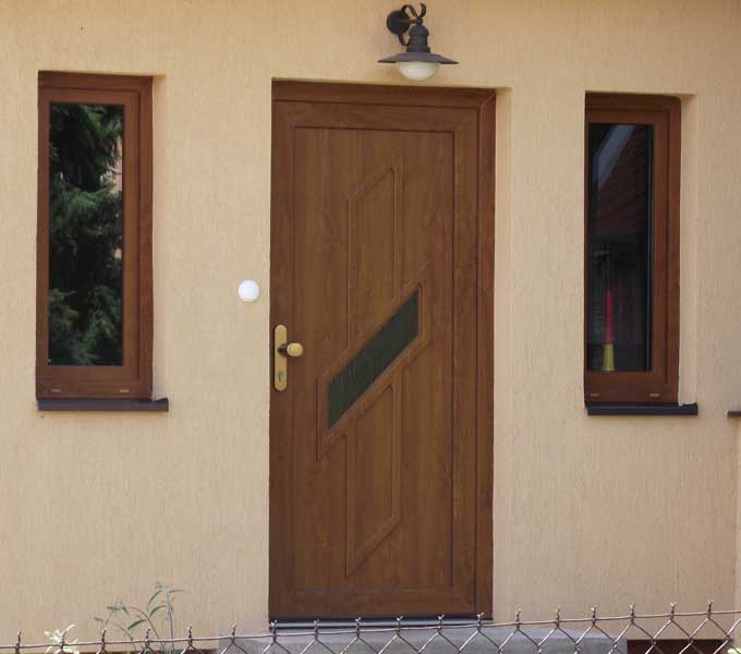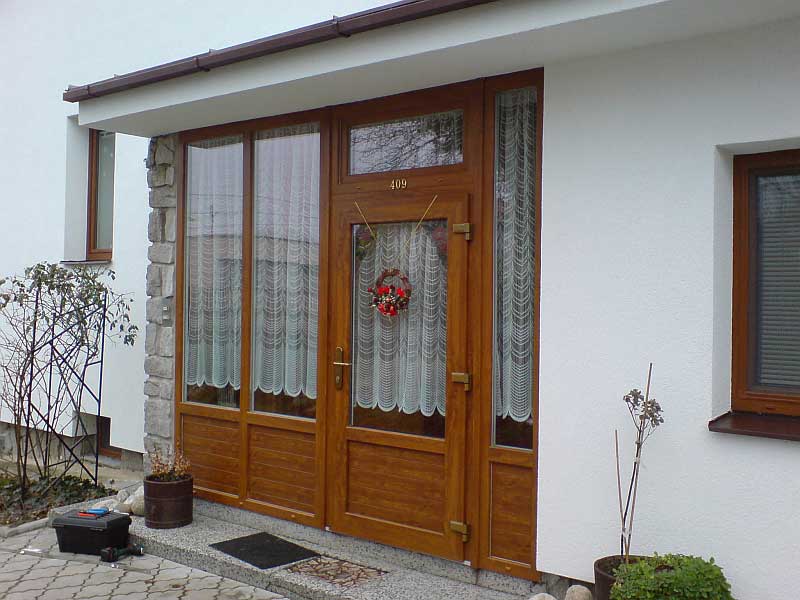 Jednokřídlé vstupní dveře s pevným dílem Dveře členěny konstrukčními příčkami