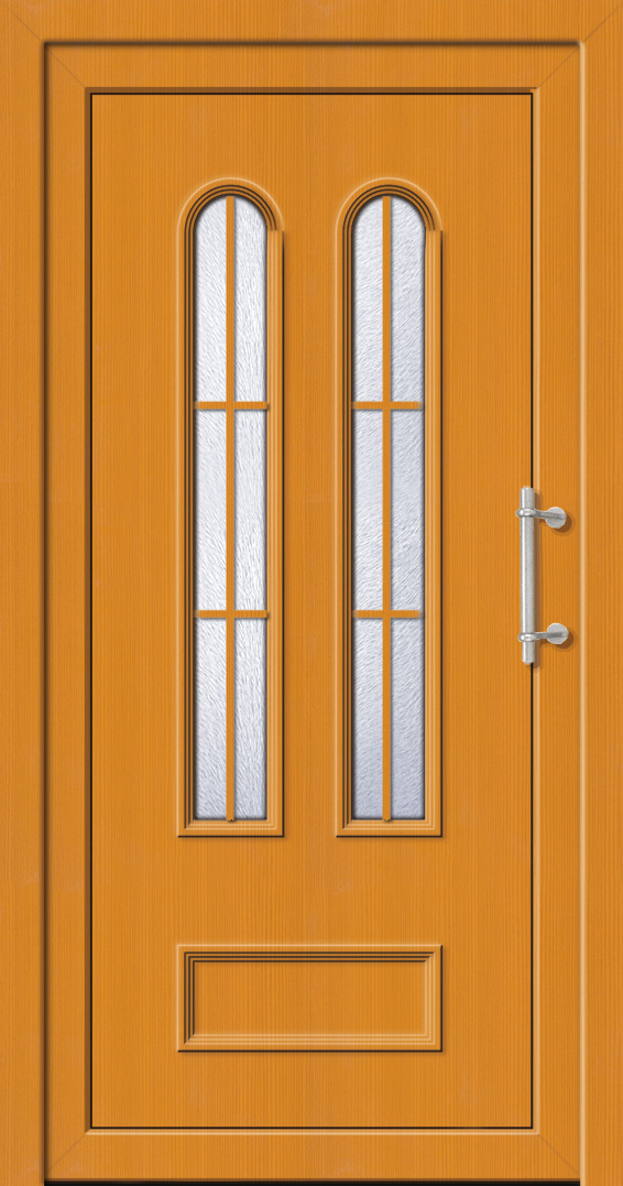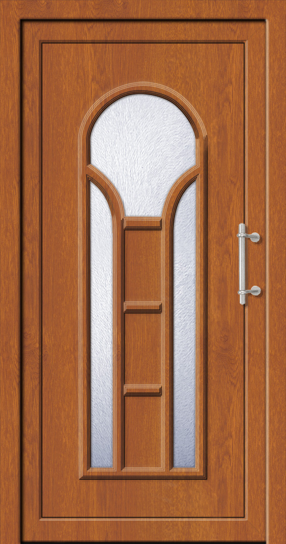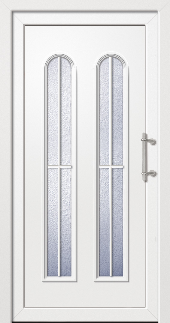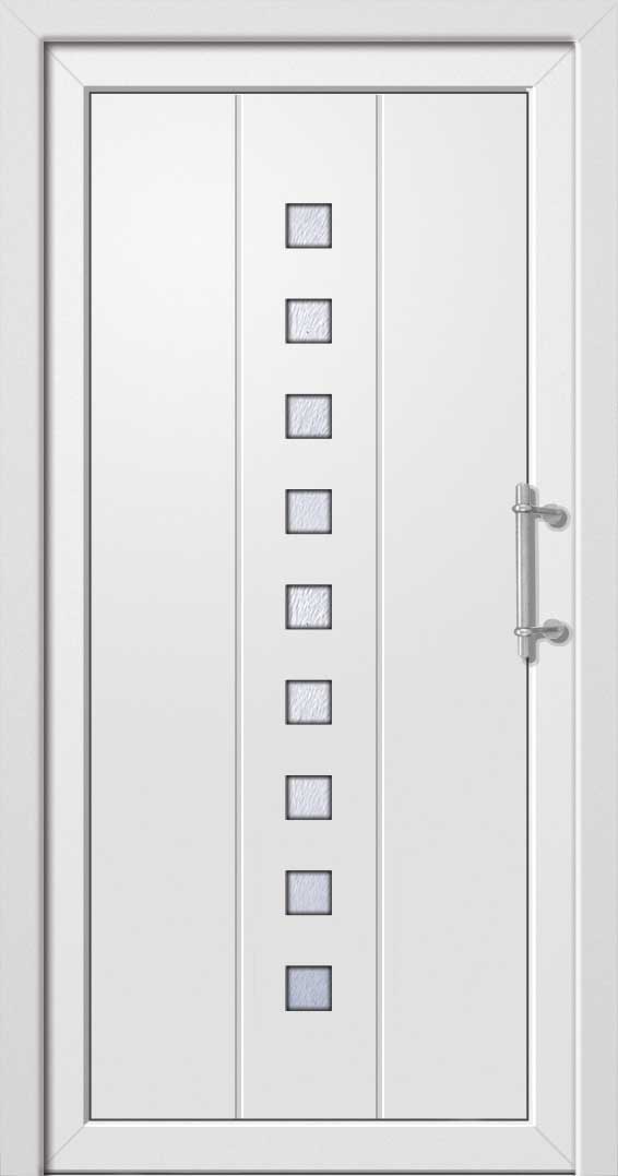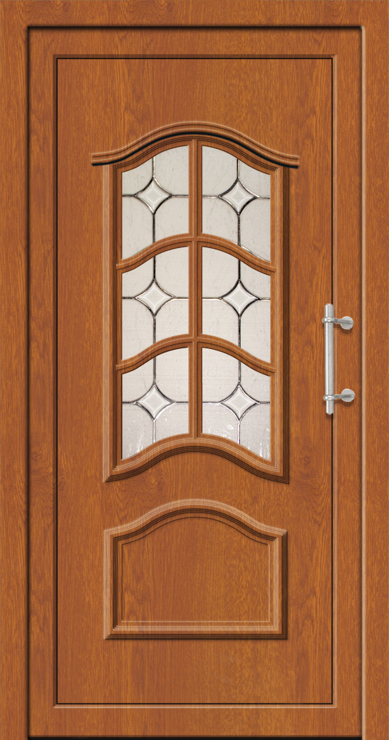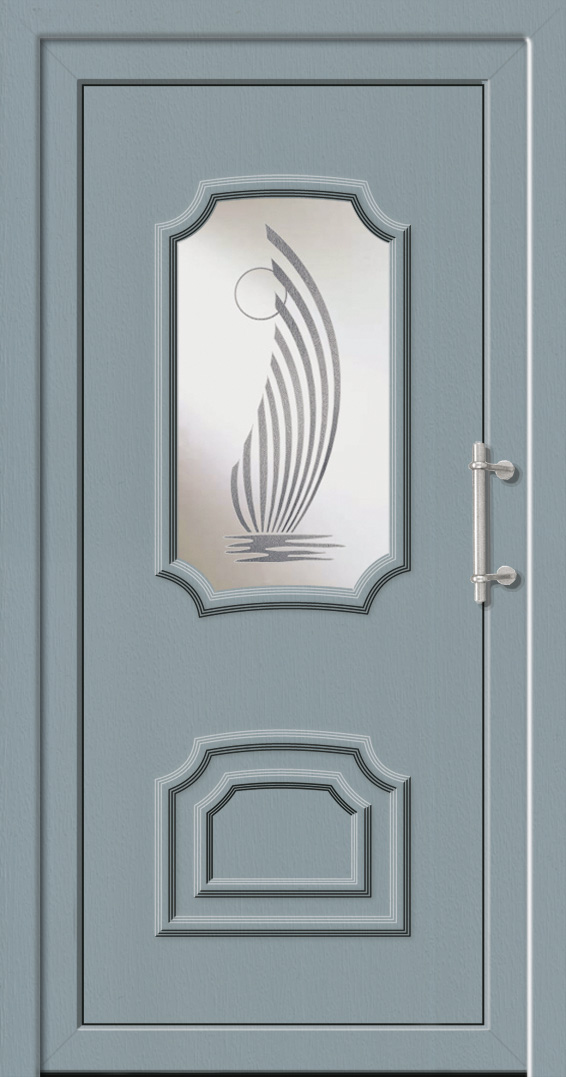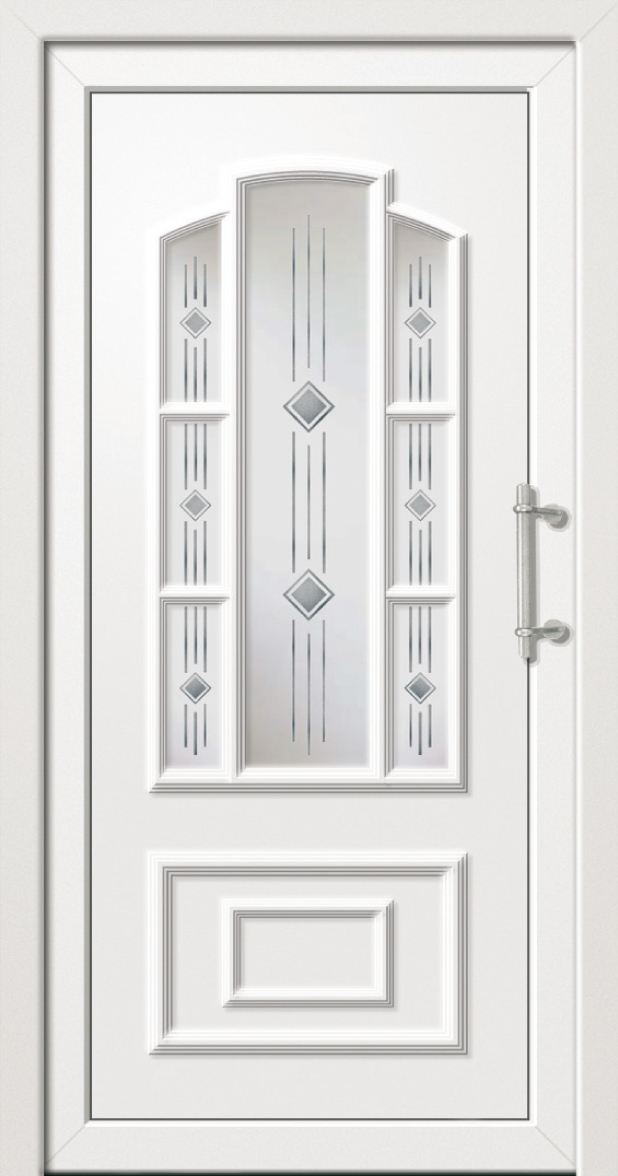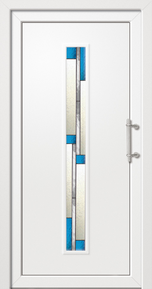 Vstupní plastové dveře Dveře členěny vložením ozdobné výplně