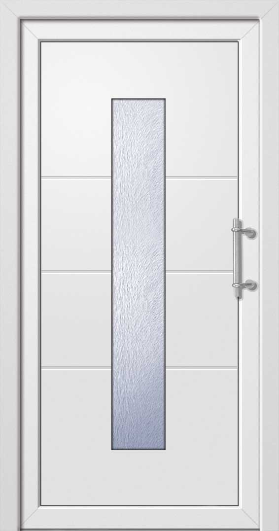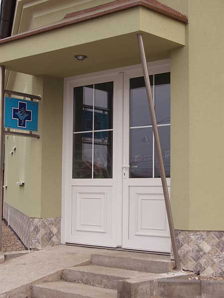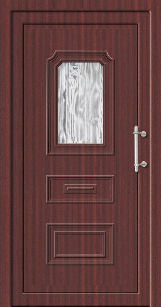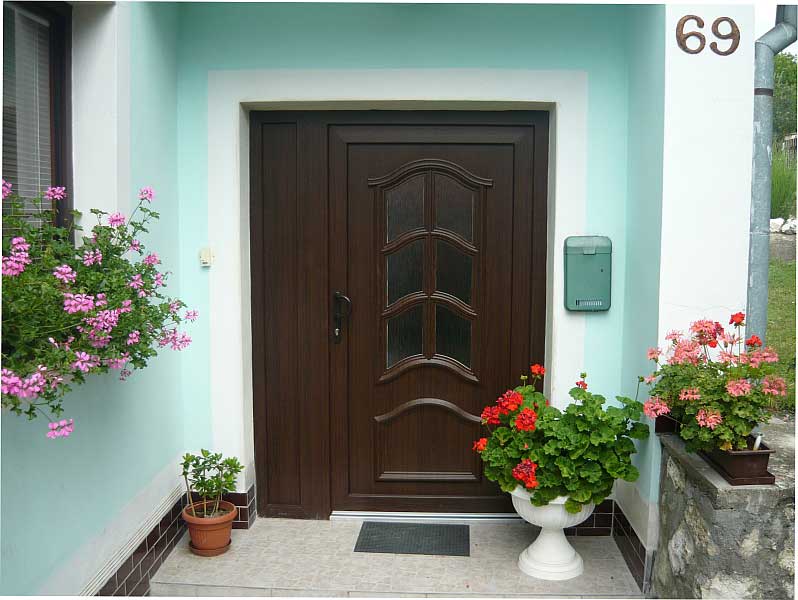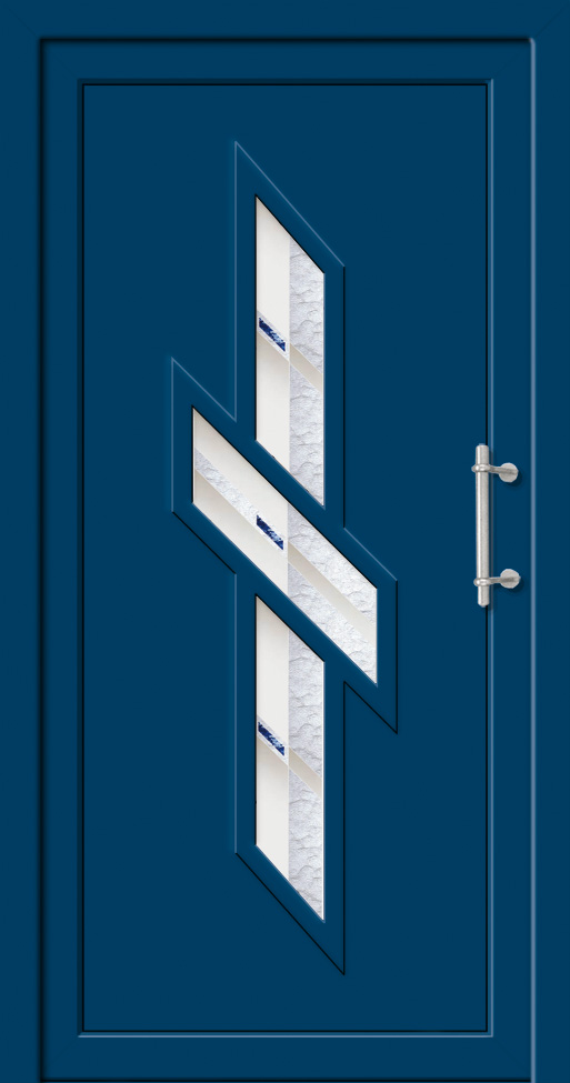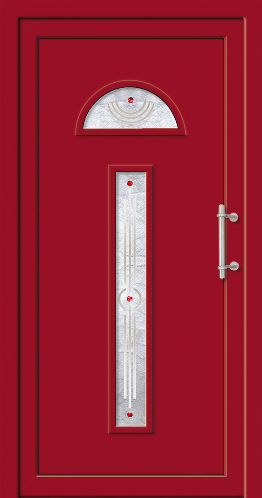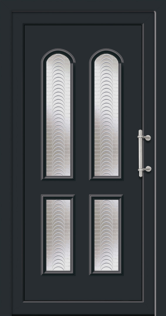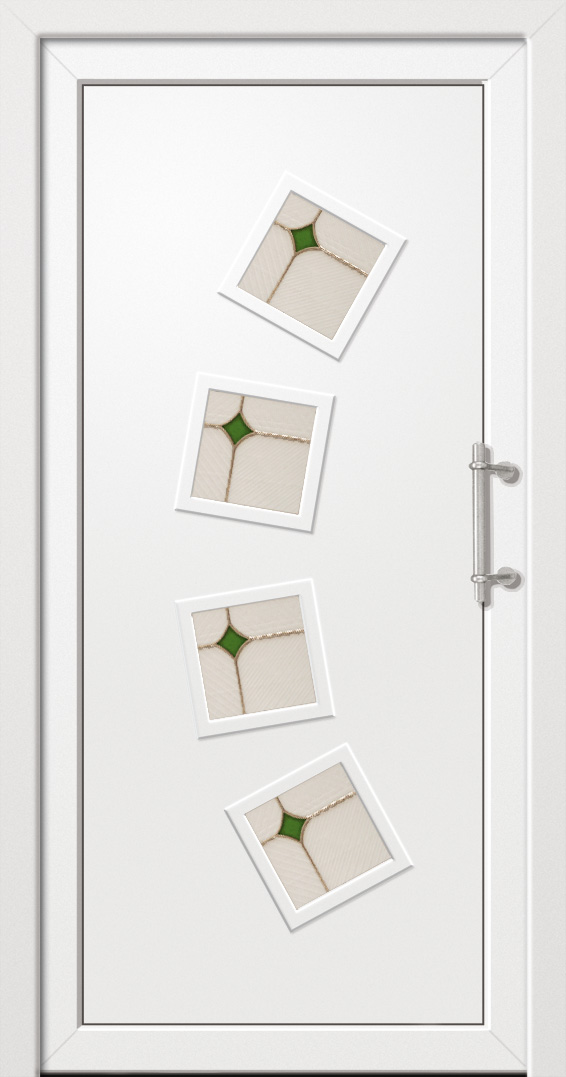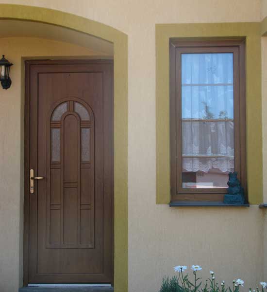 Vstupní plastové dveře Dveře členěny vložením ozdobné výplně