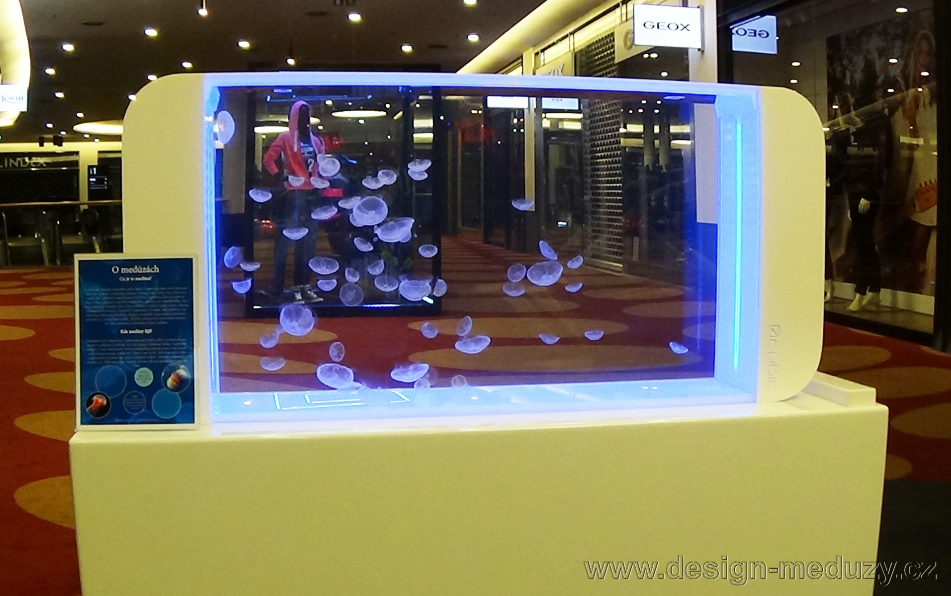 AKVÁRIUM S MEDÚZAMI V OC CHODOV / JELLYFISH TANK IN PRAGUE SHOPING CENTER CHODOV Přijďte si zarelaxovat při pohledu na měsíční medúzy. Pro relaxační zónu v obchodním centru CHODOV jsme nainstalovali 160ti litrové akvárium s medúzami. www.design-meduzy.cz