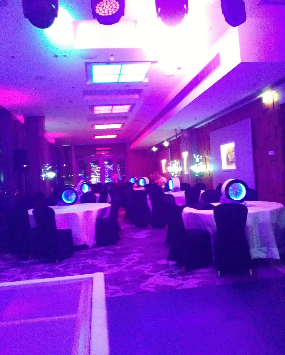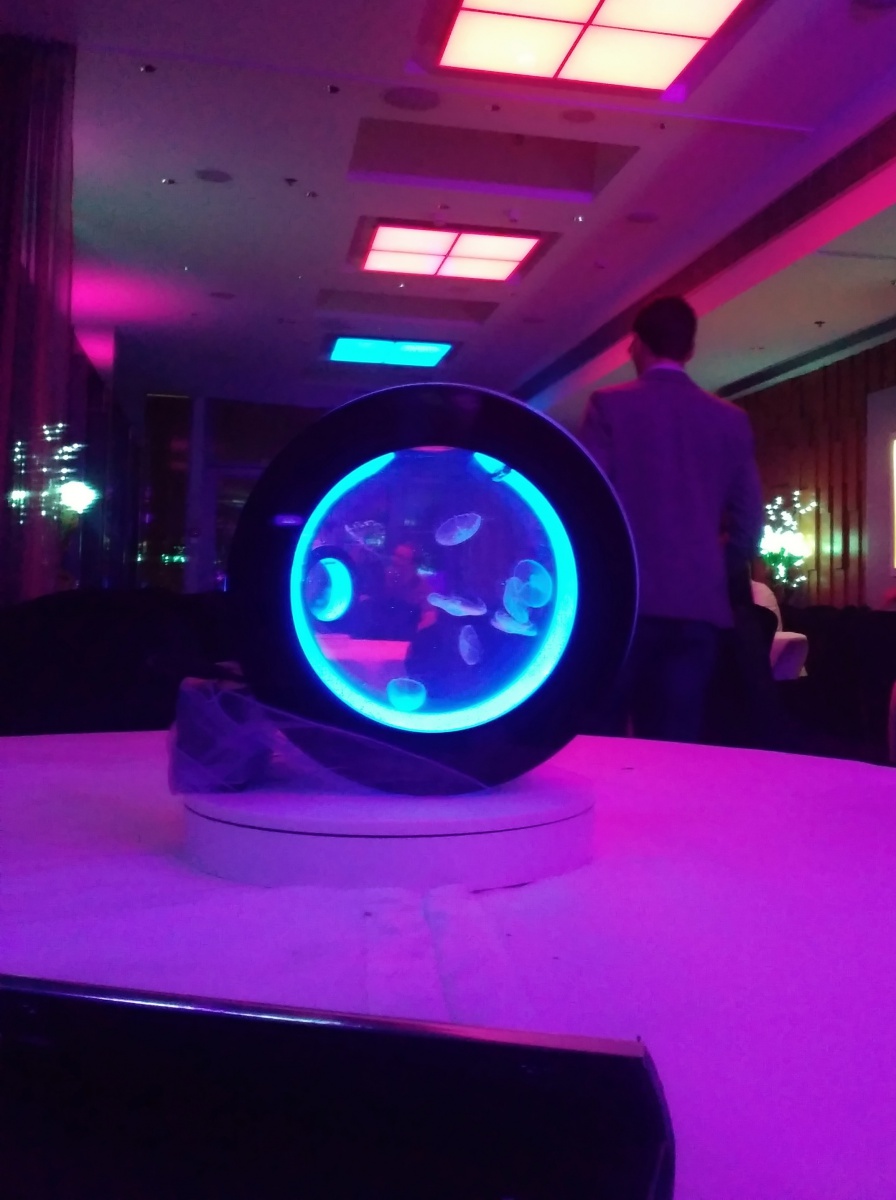 Rotující akvárium s medúzami typu Orbit 20 ve VIP zóně v Cloud 9 sky baru v hotelu Hilton Prague www.design-meduzy.cz