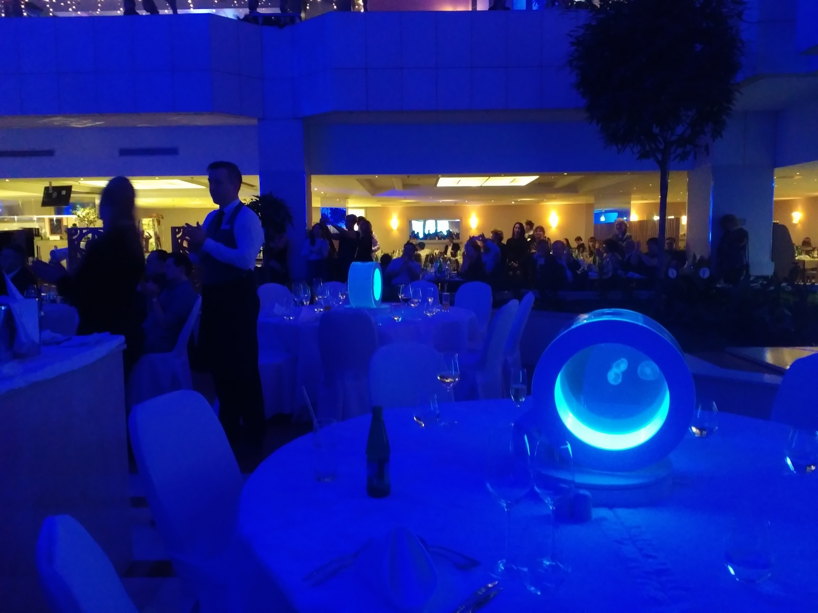 Akvárium pro medúzy Orbit 20 na rotační plošině v Hilton Prague. www.designjellyfish.com