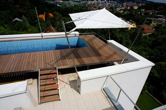 Rošt a palisáda Massaranduba kolem bazénu RD Jirny