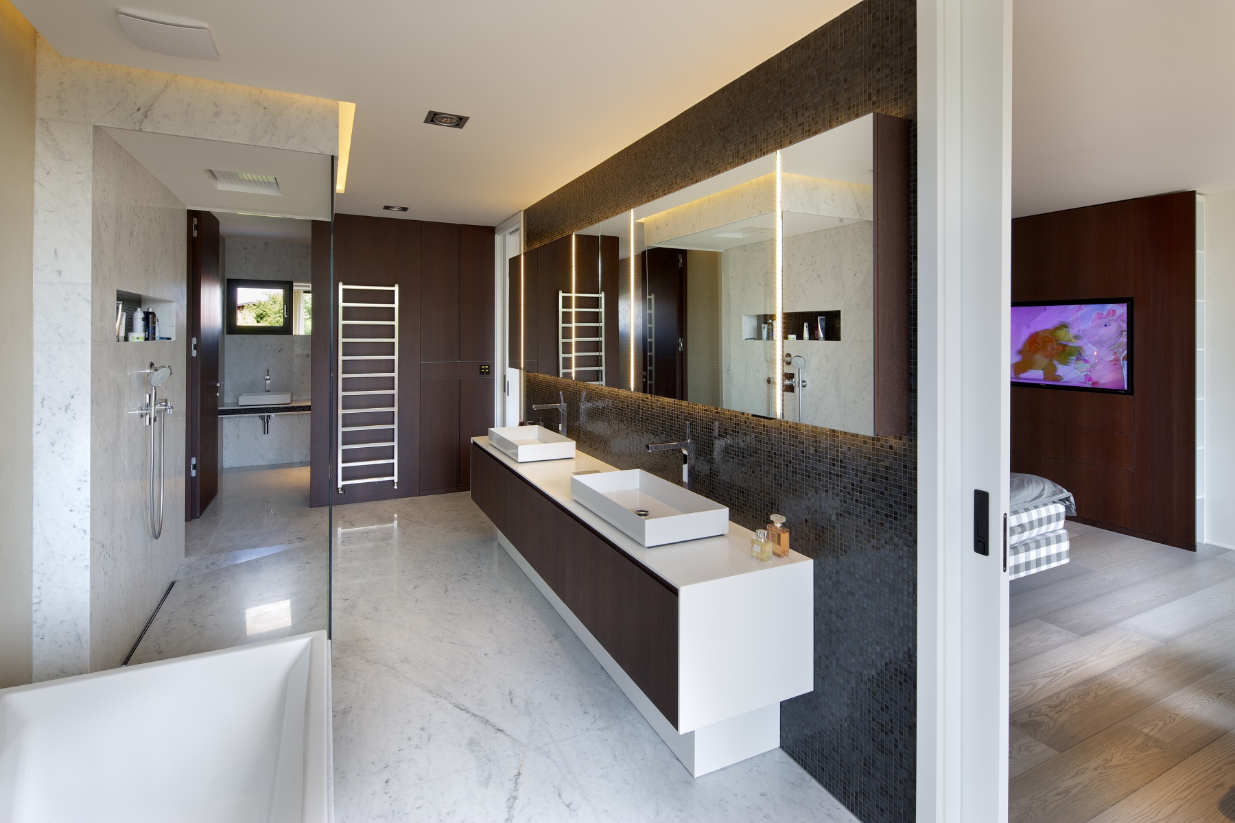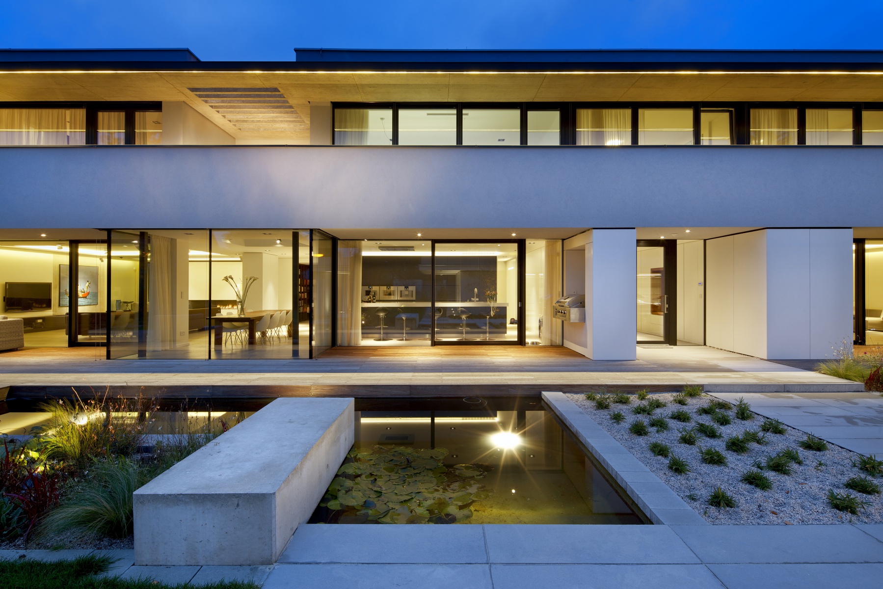 Reprezentativní vila v Průhonicích, kterou navrhli architekti Radek Teichman a Pavel Machar z architektonické kanceláře Jestico+Whiles, zaujme svou jednoduchou hmotou spolu s jasnými, čistými liniemi. To dává vyniknout kvalitním materiálům a detailům. V dokonalé souhře zde najdeme omítku, pohledový beton, italský mramor či vláknocementové desky spolu s velkorysými prosklenými plochami.