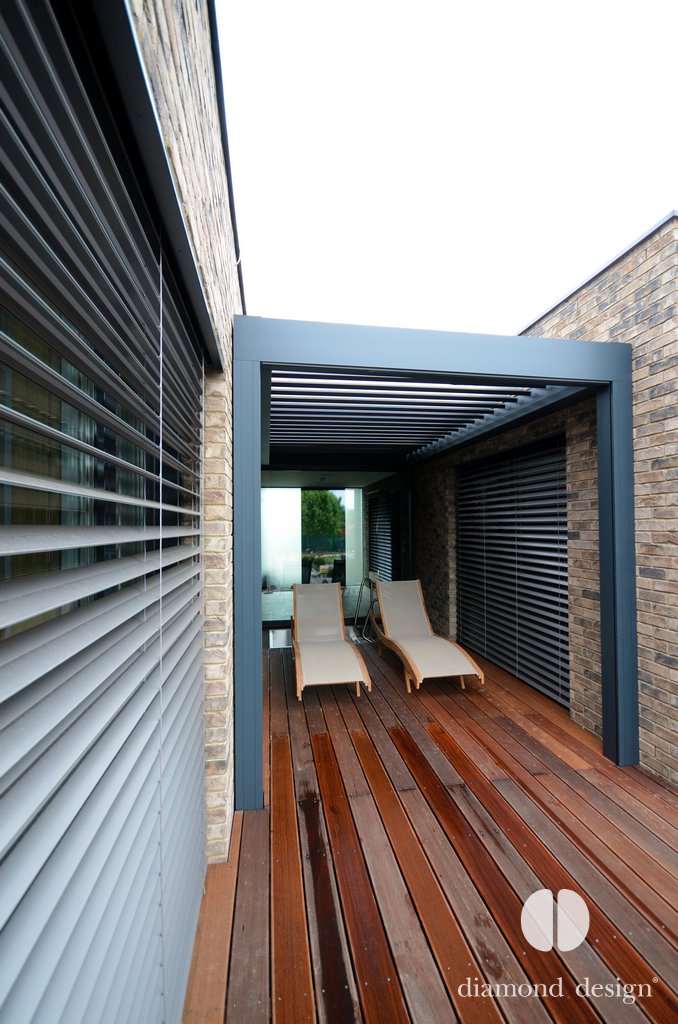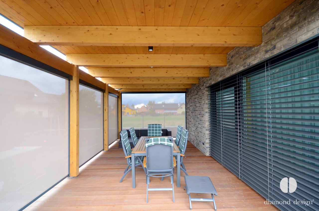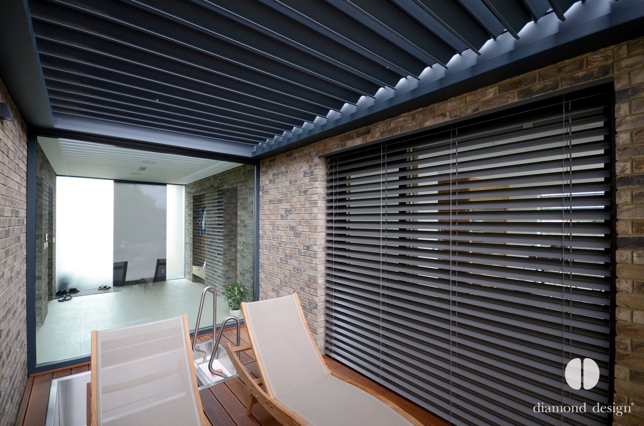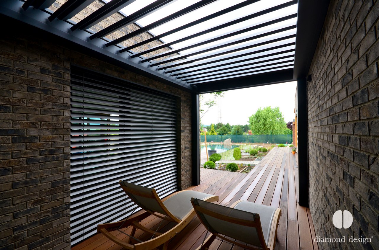 Realizace pergoly vznikla ve spolupráci s arch. kanceláří Janda & Zezula. Přáním investora bylo zastřešit venkovní prostor s bazénkem při vstupu ze sauny a zajistit boční ochranu před větrem.