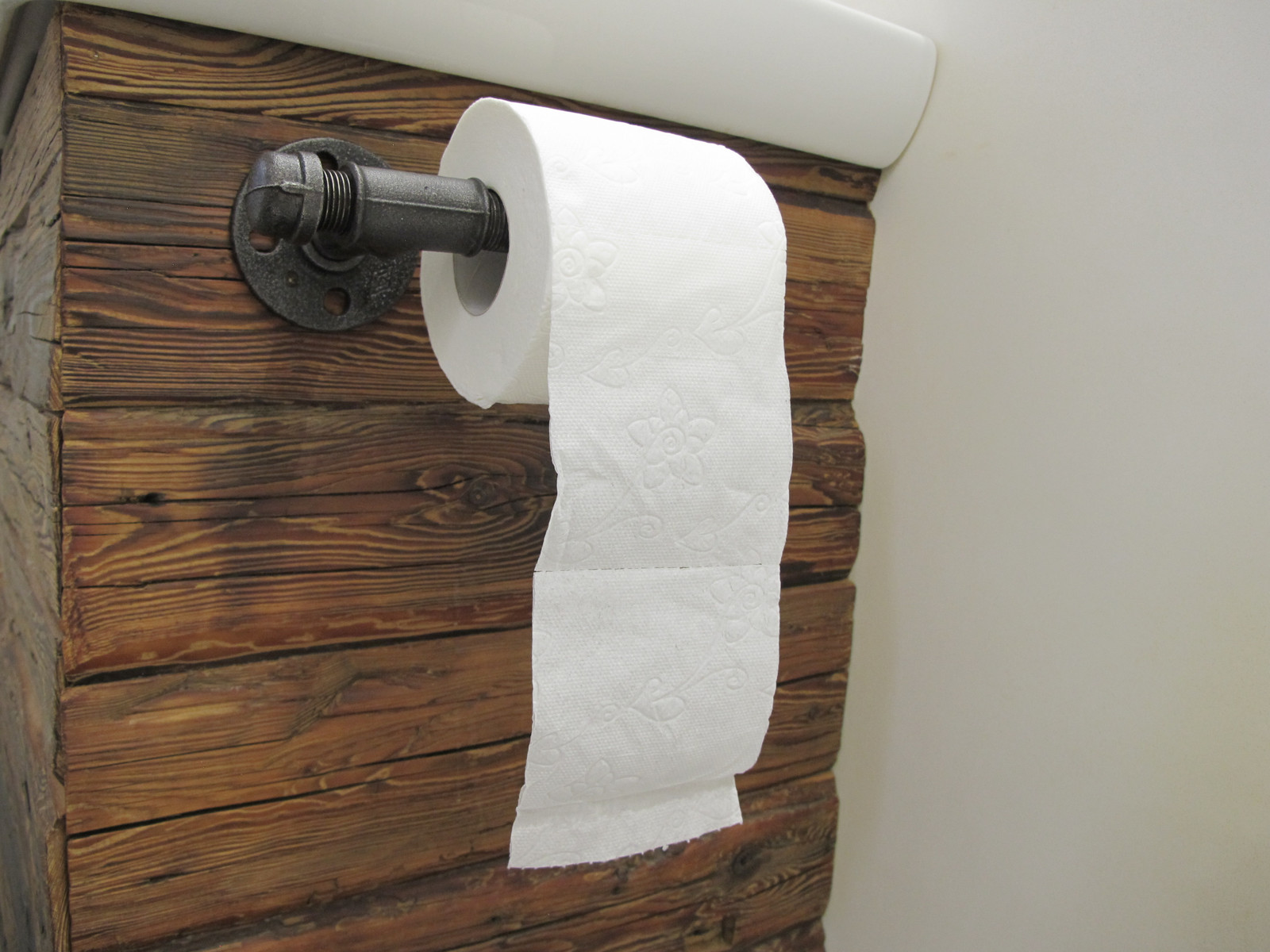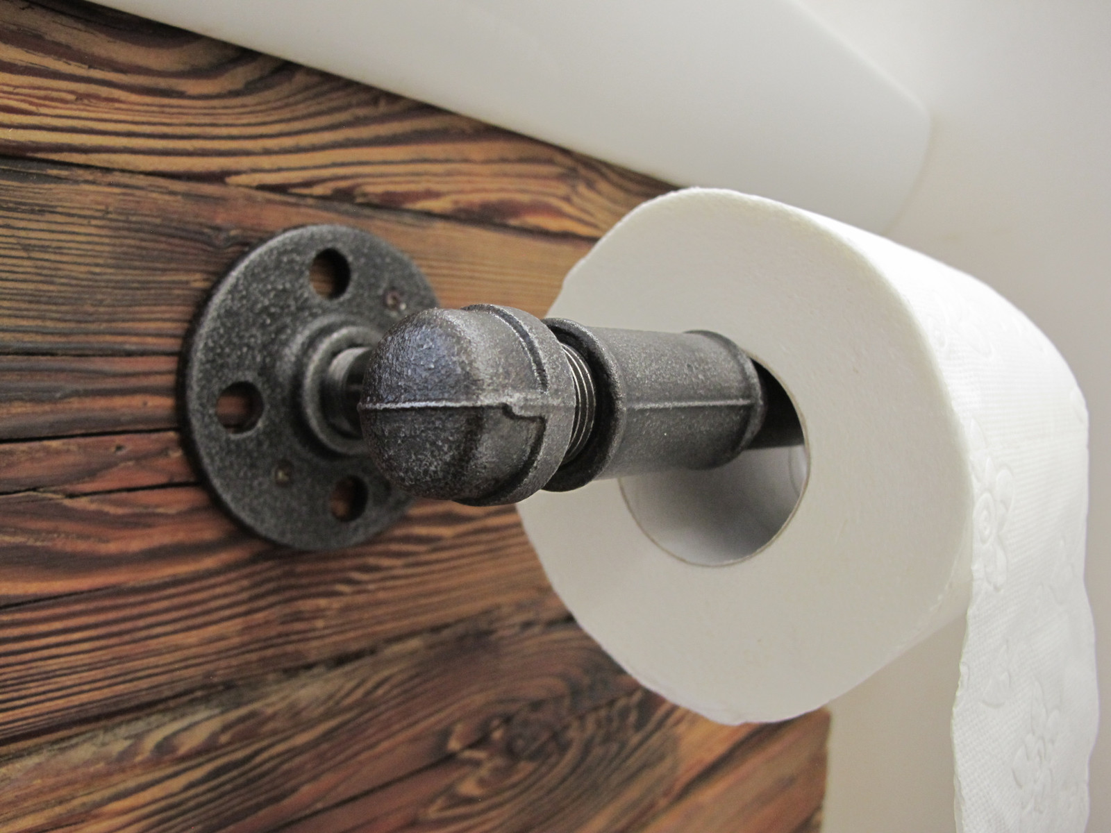 Toaletní papír se dočkal důstojného místa pro své bytí, radost odmotávat. Vyrobeno z vodovodních trubek, patinováno a ošetřeno matným lakem. Pro uchycení do zdi mohu k držáku přibalit dva černé šestihranné šrouby s hmoždinkami jaké používám například u garnýží. Pro nenápadné uchycení do dřeva nebo do zdi, mohu do příruby předvrtat dvě menší díry.