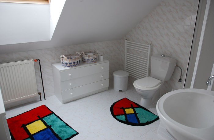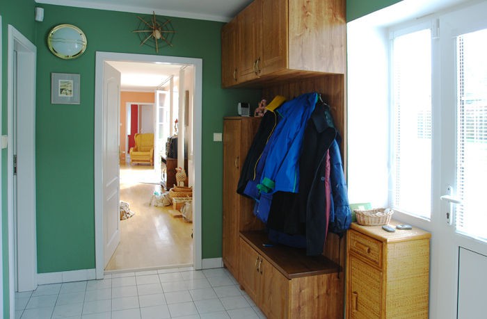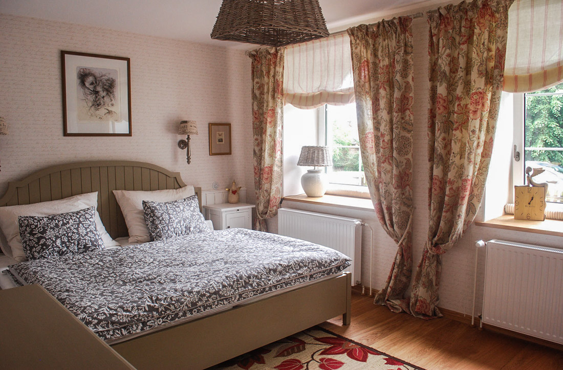 Všechny pokoje byly předtím zhruba v tomto stylu. V patře byly 3 pokojíčky plné postelí pro příbuzné, děti a vnoučata. Chtěla jsem, aby každý pokoj byl jiný a tak jsme je odlišili barevně a dozdobili krásnými tapetami a textiliemi. O dokonalé ušití všech textilií se postarala naše paní Markéta Tichoňová.