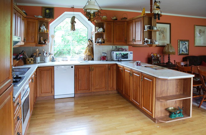 A takto vypadala kuchyně původně - pro mě trochu postrach českých chalup - oranžovo-hnědá klasika.