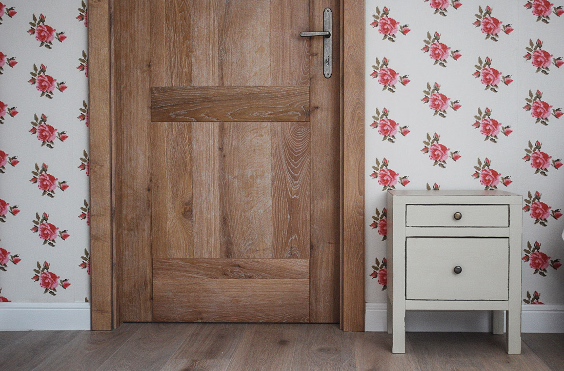 Nejdříve přišly na řadu nové podlahy, oslovila jsem firmu Podlahy Praha, kteří se ujali pokládky třívrstvé dubové podlahy, potom dveře od firmy JSJ Interier, kteří vyrobili dveře dle mého návrhu a doladili jsme je patinovým kováním a klikami.