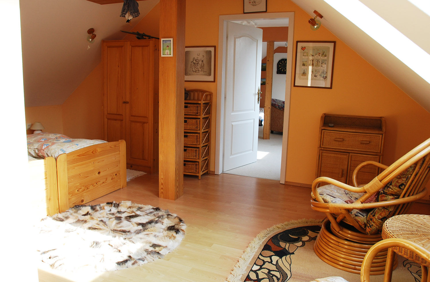 Dřívější pracovna byla opět v oranžovo-hnědých odstínech, palanda zde byla asi jen proto, že zbyla po dětech. Proti ratanu osobně nic nemám, naopak, ale tvar a barva se hodí spíš do zimních zahrad doplněných velkou květinovou výzdobou.