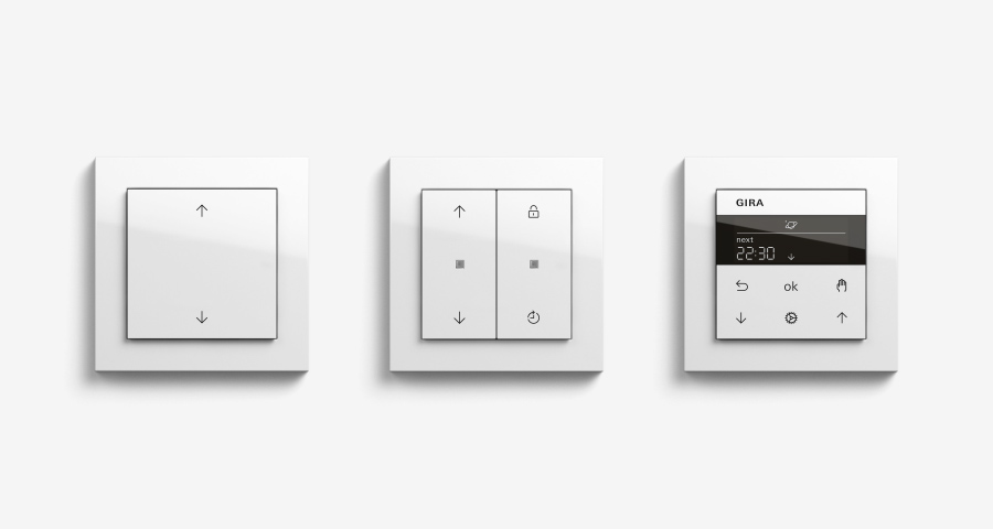 Nové produkty v oblasti ovládání žaluzií Gira System 3000 se vyznačují intuitivním ovládáním a jednoduchým označením tlačítek. Snížení počtu na tři ovládací nástavce zjednodušuje škálu sortimentu. Již jednoduchý nástavec k manuálnímu ovládání ukládá individuální polohu žaluzie/rolety. Ovládací nástavec Memory ukládá stisknutím tlačítka dodatečně i aktuální čas pro každodenní vytažení a stažení, a zahrnuje ochranu proti nechtěnému zatažení rolety/žaluzie. Ovládání žaluziových hodin Display je díky vysoce kontrastnímu osvětlenému displeje a kapacitní ploše snímače obzvláště snadné. Individuální časový program a astrofunkce zaručují vysoké pohodlí.