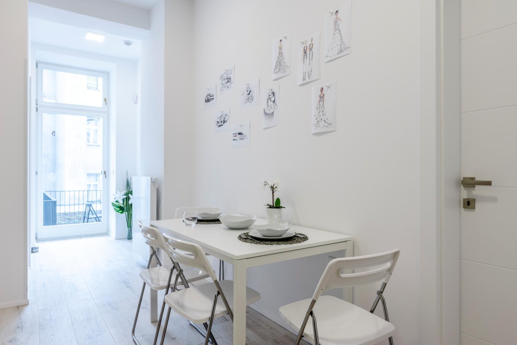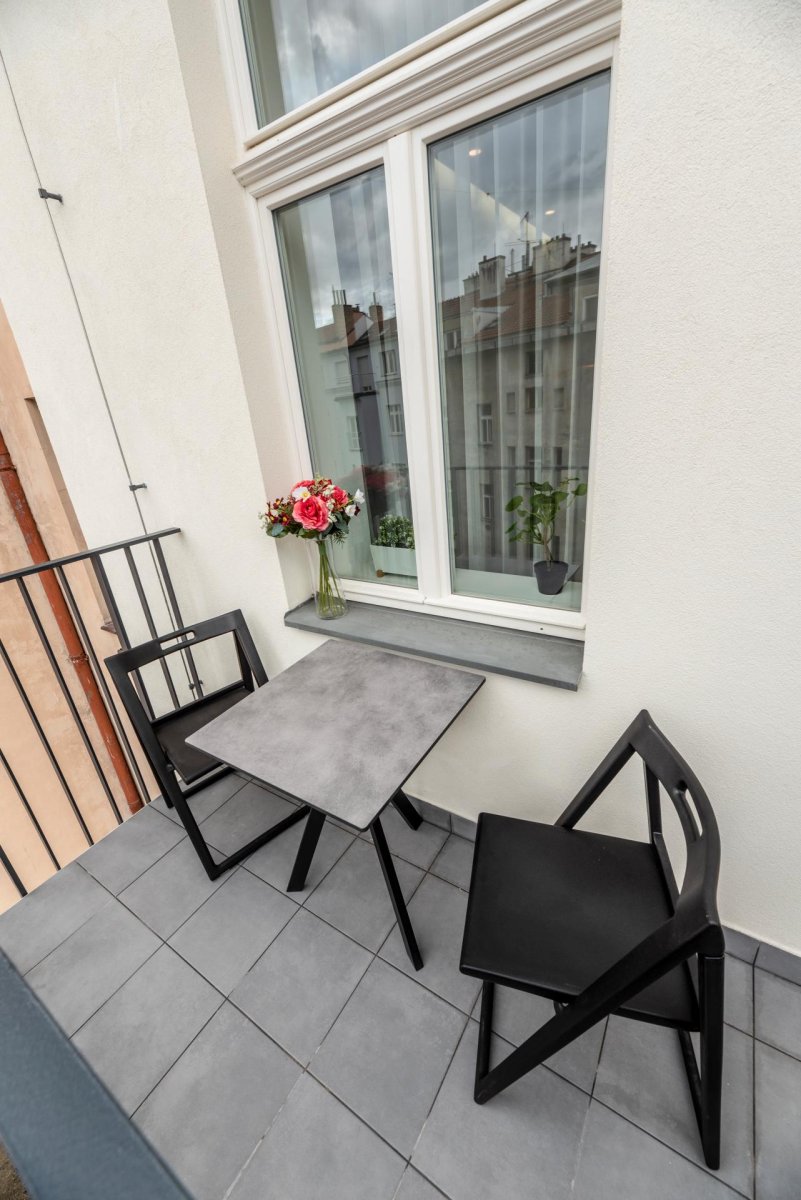 Návrh interiérů čtyř studentských bytů byl součástí rekonstrukce nájemního domu na Vinohradech. Návrh každého bytu zahrnuje tři samostatné pokoje a společné zázemí. Dva pokoje jsou určeny pro jednoho studenta, jeden pokoj je cílen pro páry a obsahuje sklápěcí postel se sedačkou. V centrální chodbě je umístěna kuchyně s jídelnou na kterou navazuje koupelna, samostatné WC a komora.