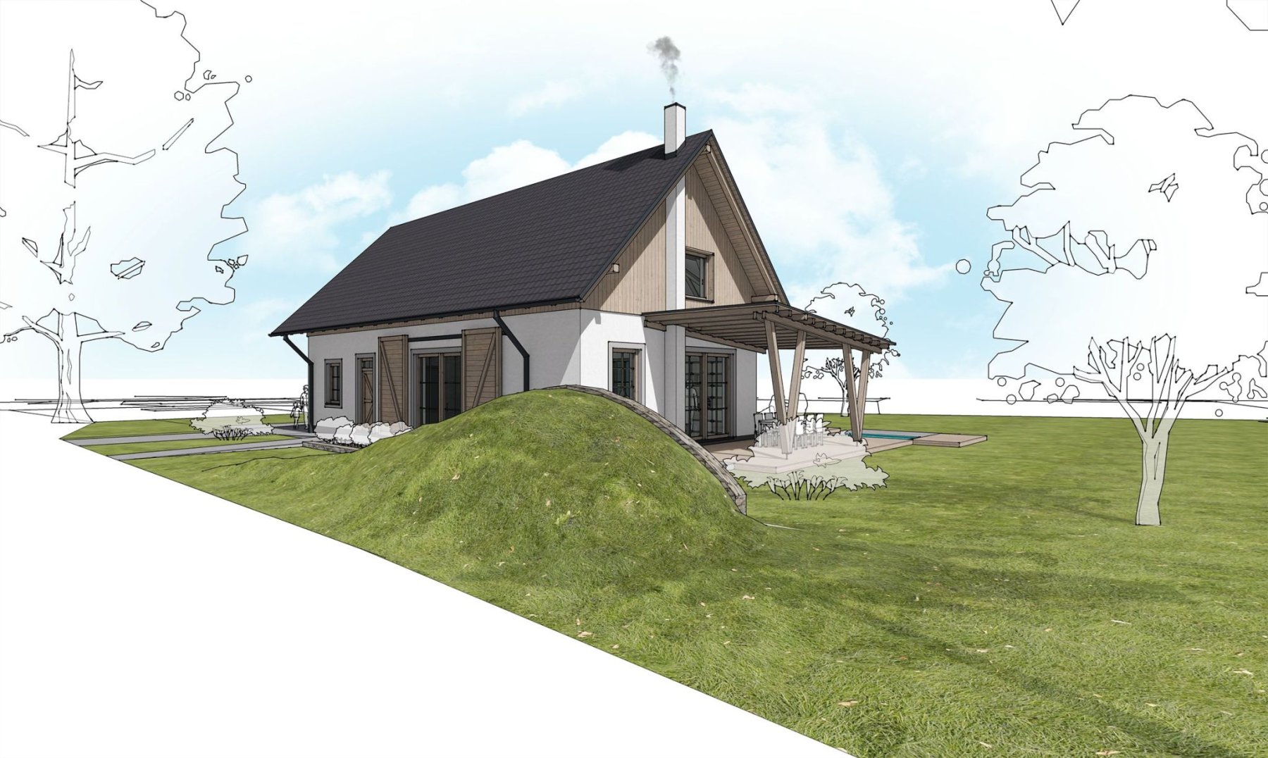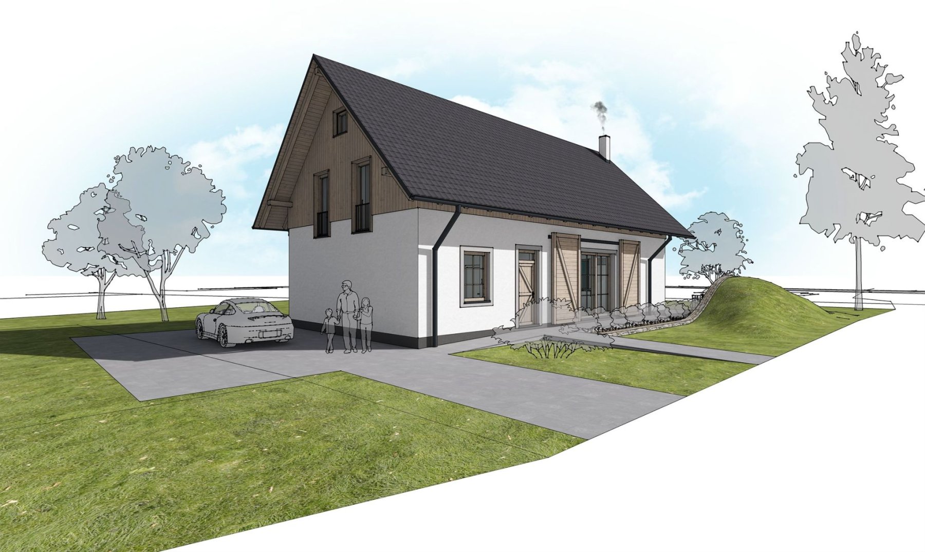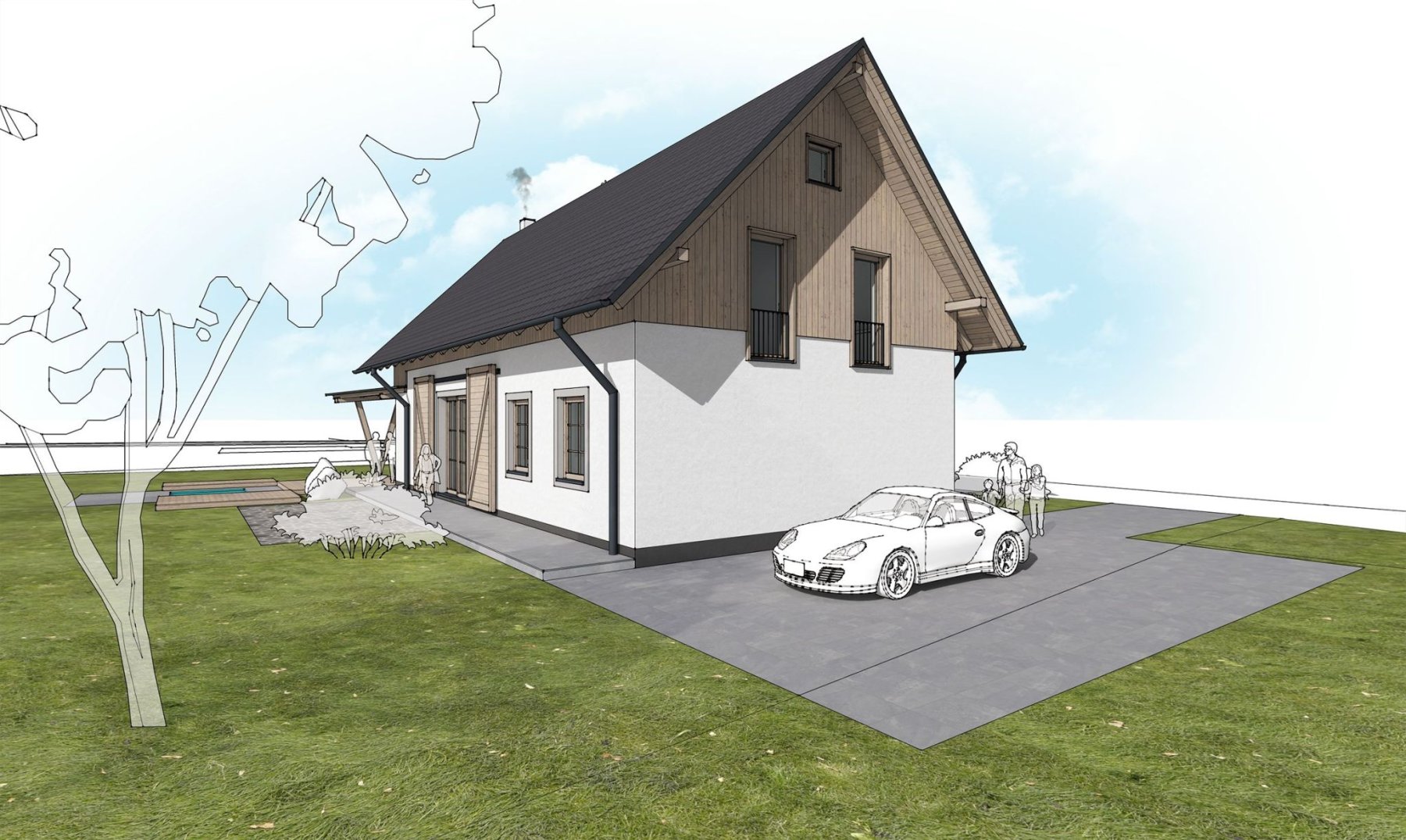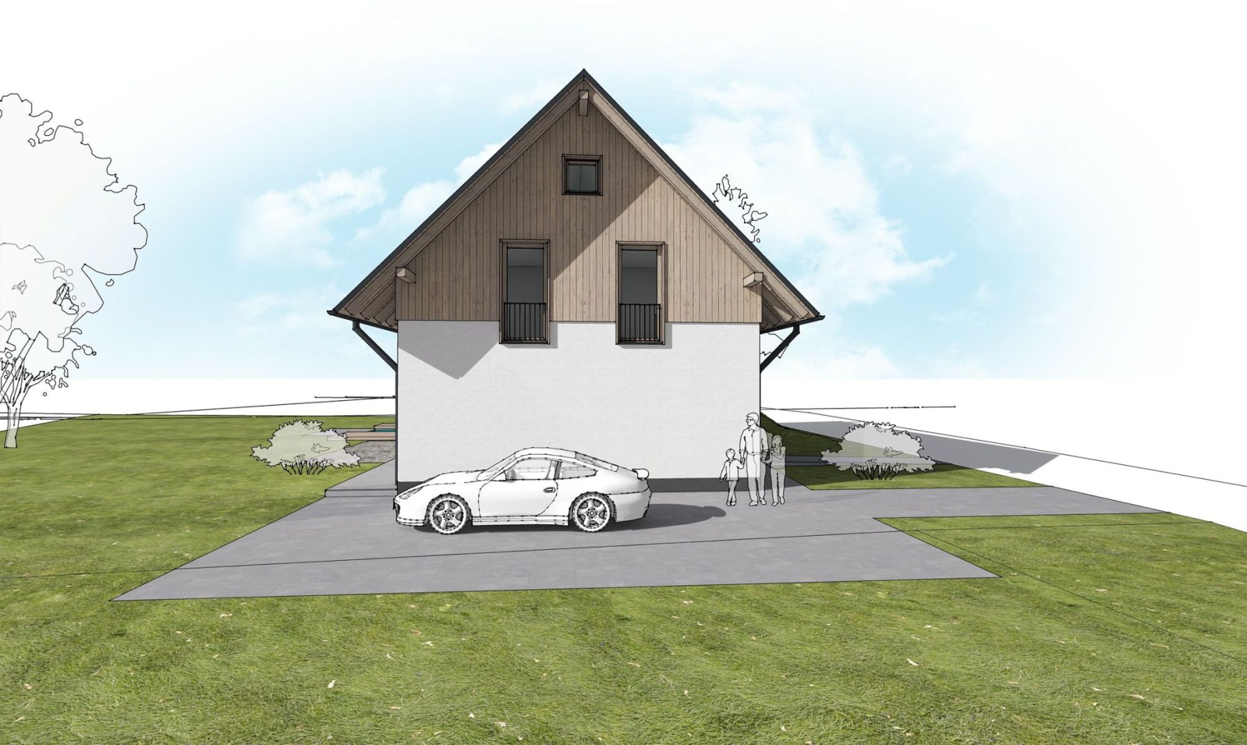 návrh venkovského rodinného domu - jihovýchodní pohled
