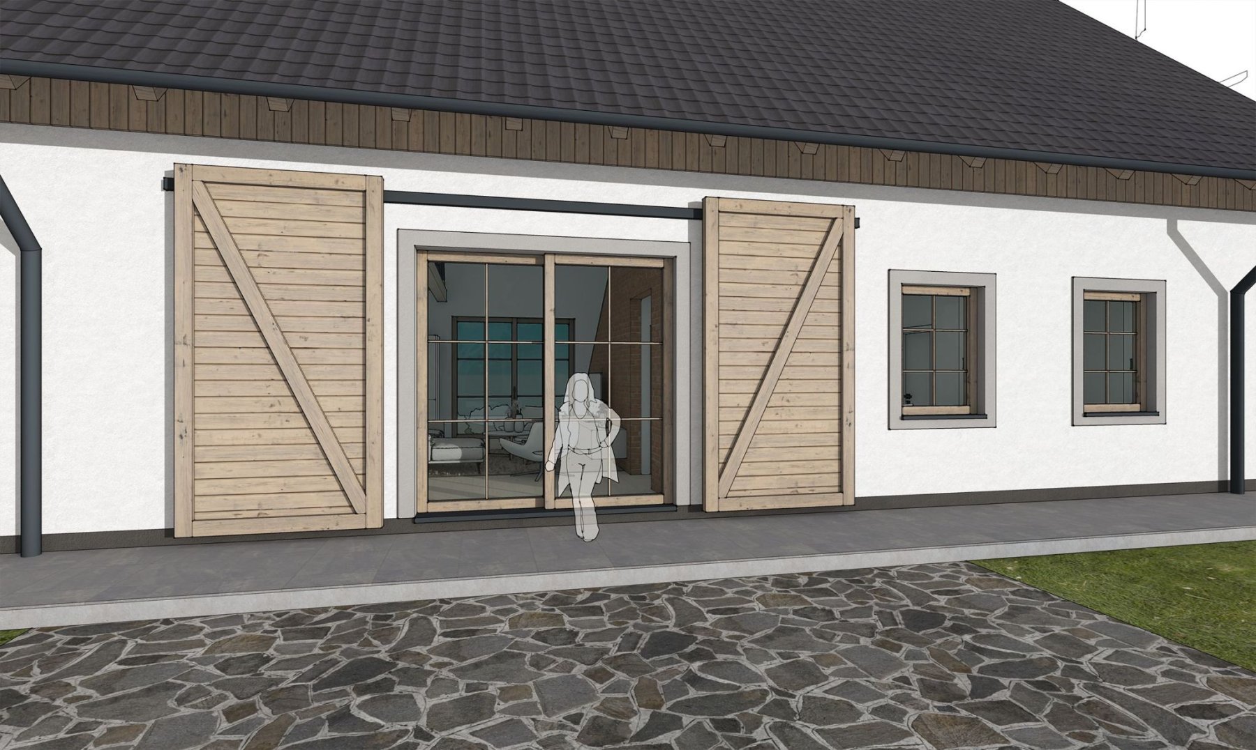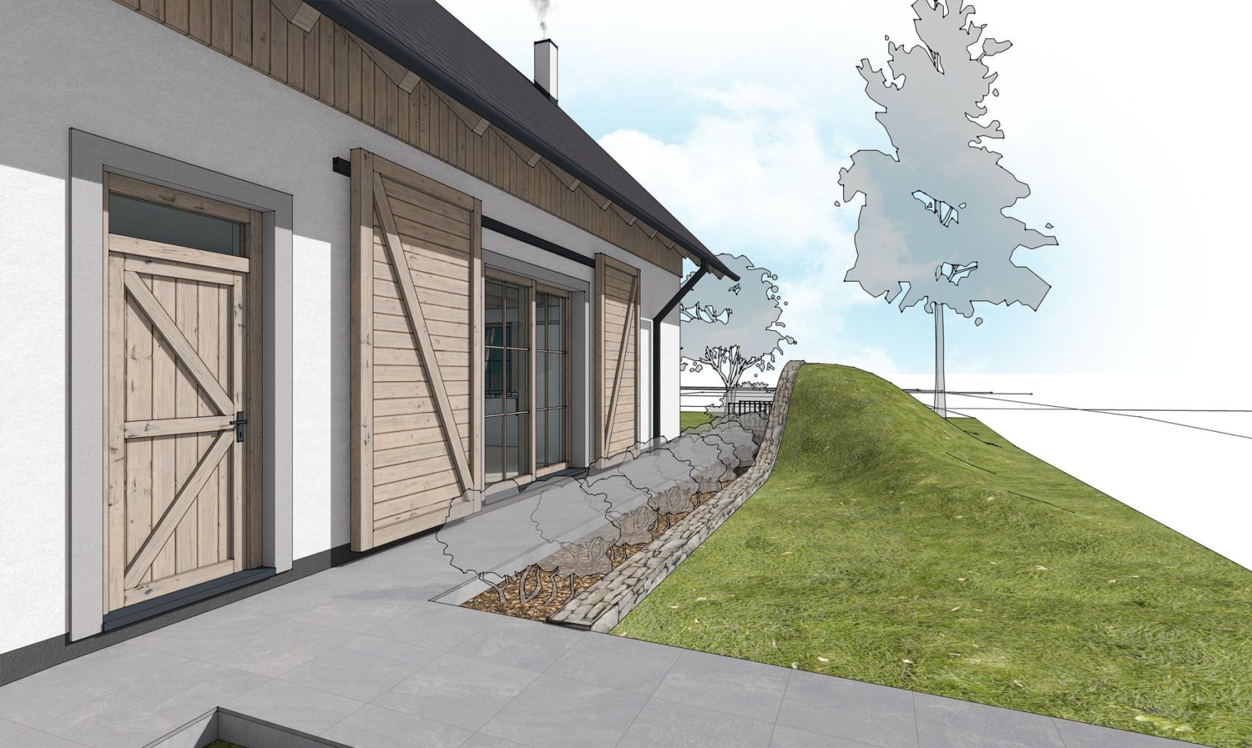 návrh venkovského rodinného domu - detail fasády do zahrady
