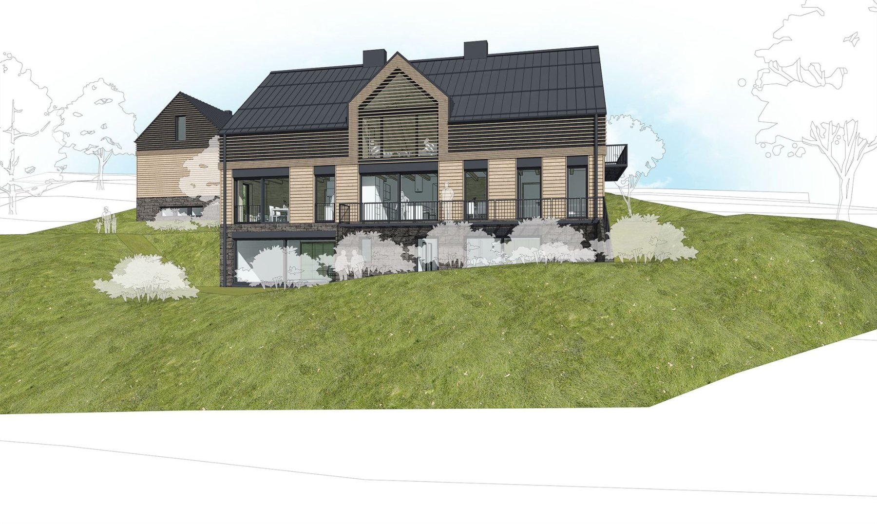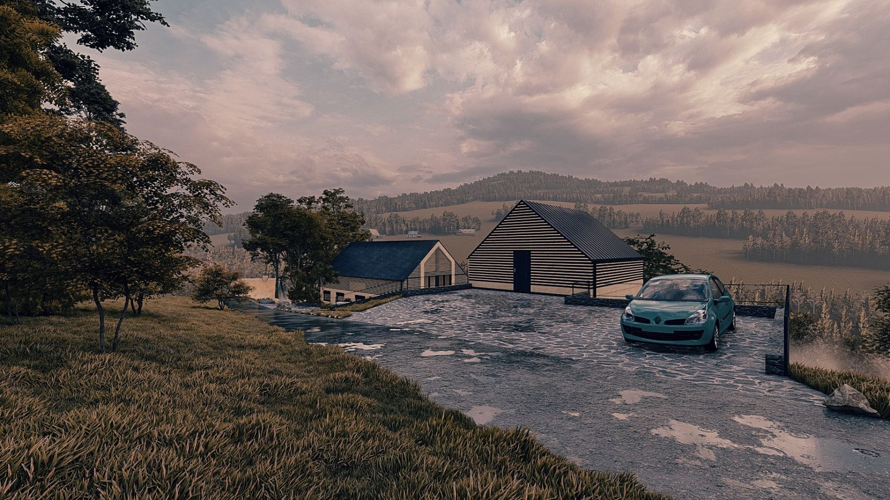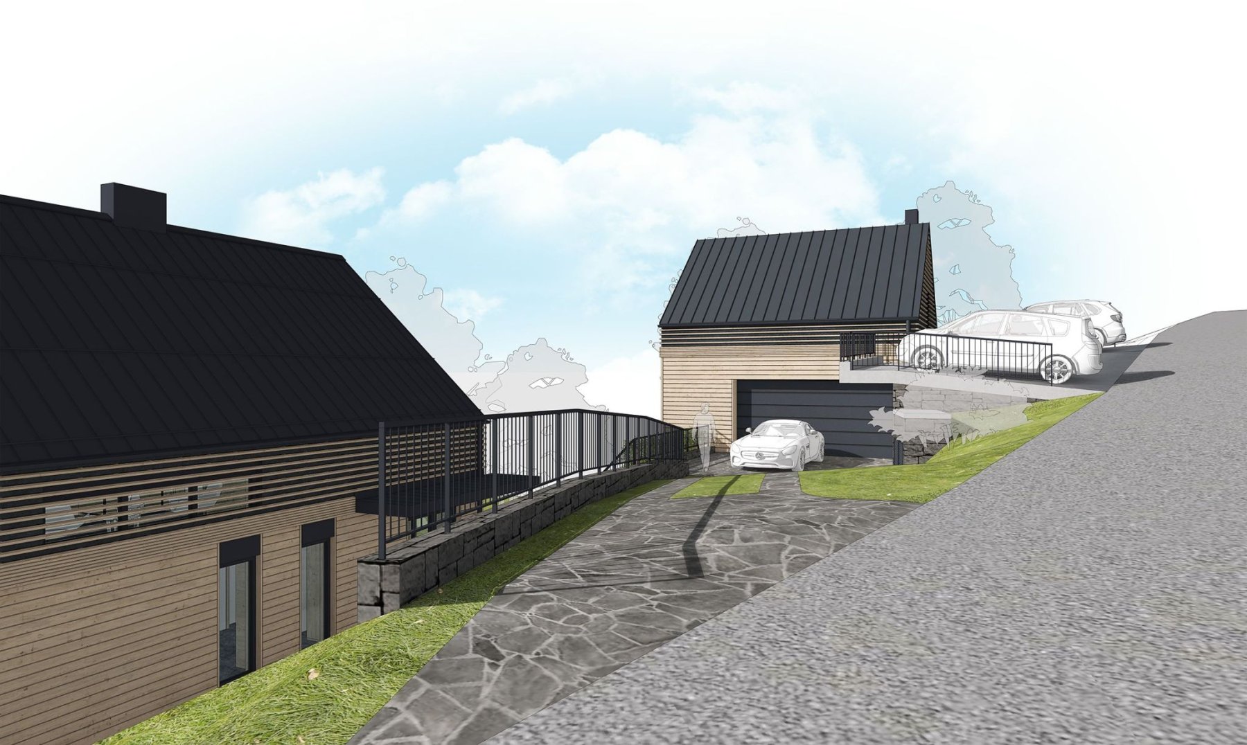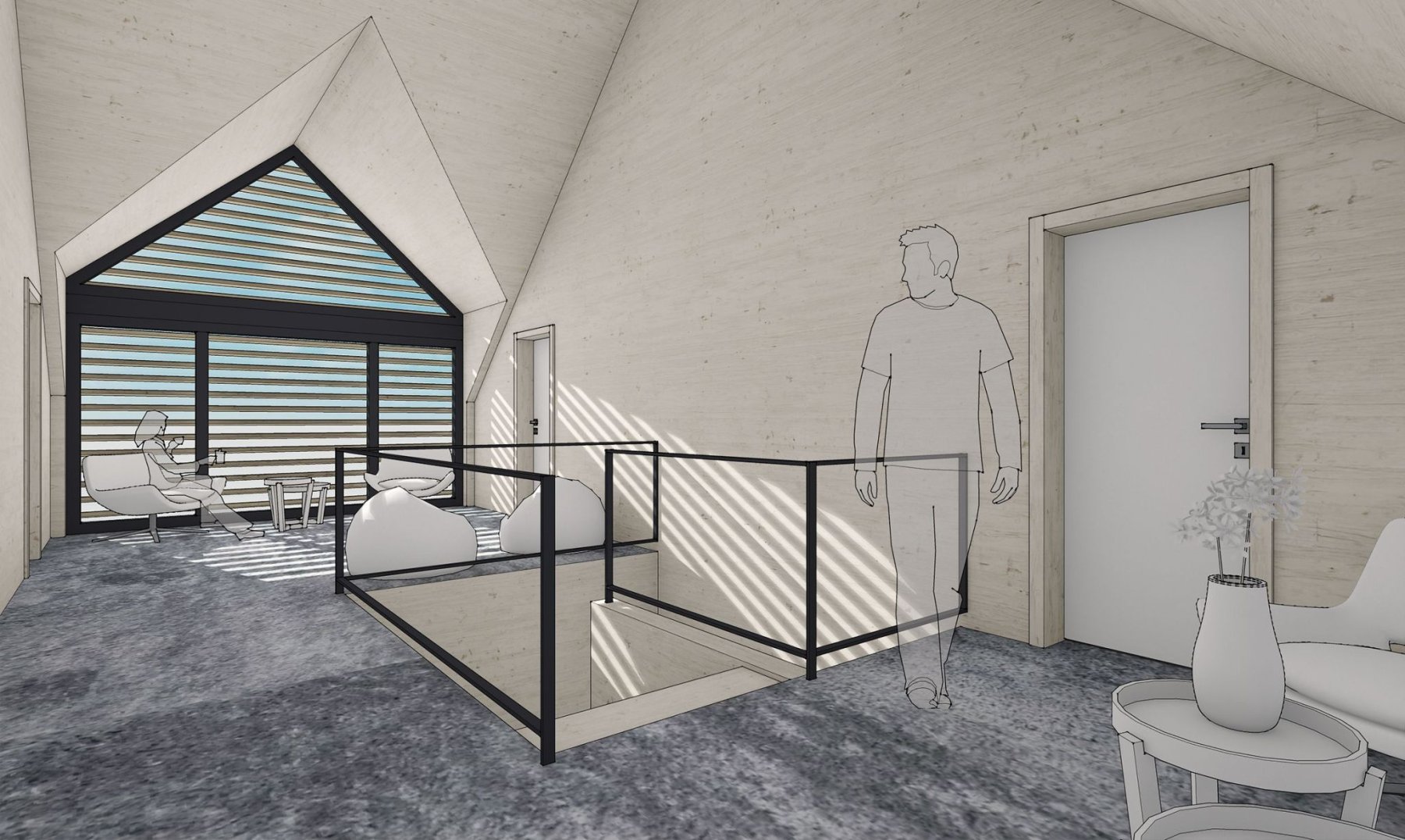 Projekt rodinného domu v Krkonoších byl specifický svým zadáním. Měl sloužit nejen rodině majitelů, ale umožňovat i ubytování hostů a fungovat zároveň jako penzion. Hosté měli mít možnost využívat vnitřní bazén, společenskou místnost, venkovní kryté posezení s krbem i rozlehlou zahradu s krásným výhledem. Vše mělo být vizuálně a funkčně spojeno tak, aby uživatelé měli pocit jednotného areálu, který zapadá do okolní krajiny a maximálně využívá potenciál místa. Vznikla tak studie rodinného domu s krásným i útulným bydlením v přírodě.