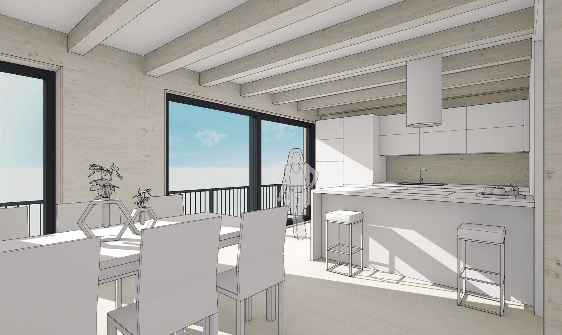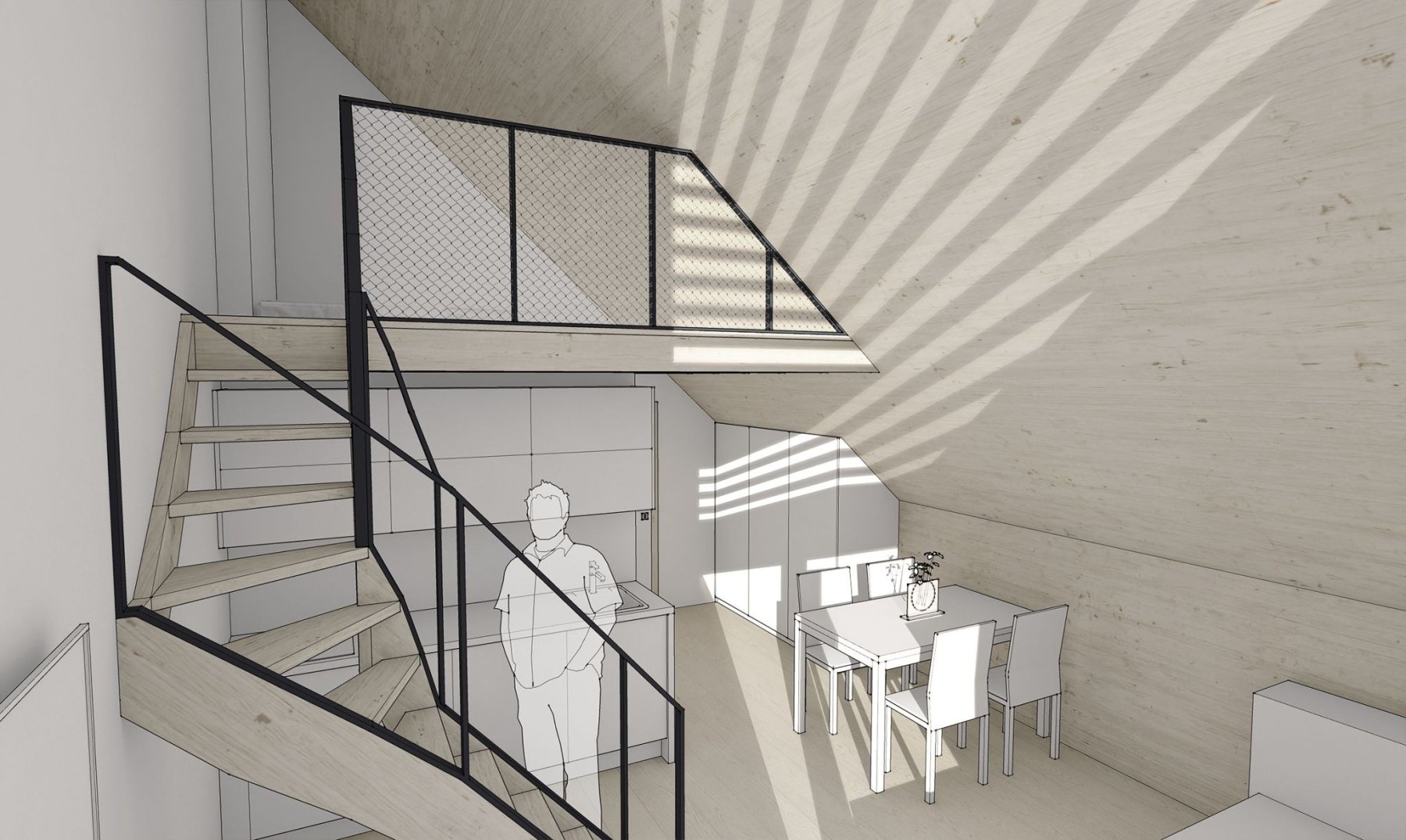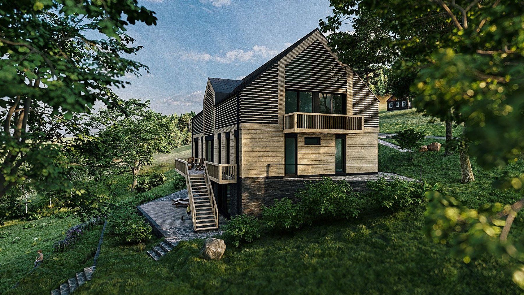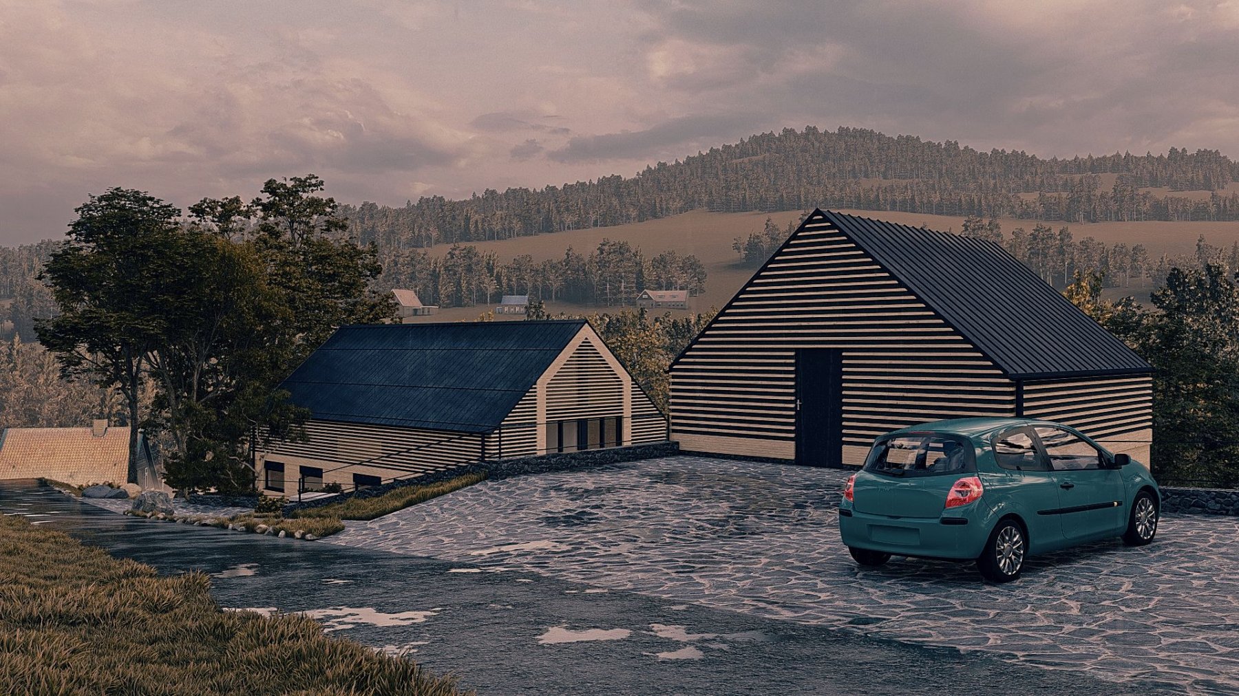 Projekt rodinného domu v Krkonoších byl specifický svým zadáním. Měl sloužit nejen rodině majitelů, ale umožňovat i ubytování hostů a fungovat zároveň jako penzion. Hosté měli mít možnost využívat vnitřní bazén, společenskou místnost, venkovní kryté posezení s krbem i rozlehlou zahradu s krásným výhledem. Vše mělo být vizuálně a funkčně spojeno tak, aby uživatelé měli pocit jednotného areálu, který zapadá do okolní krajiny a maximálně využívá potenciál místa. Vznikla tak studie rodinného domu s krásným i útulným bydlením v přírodě.