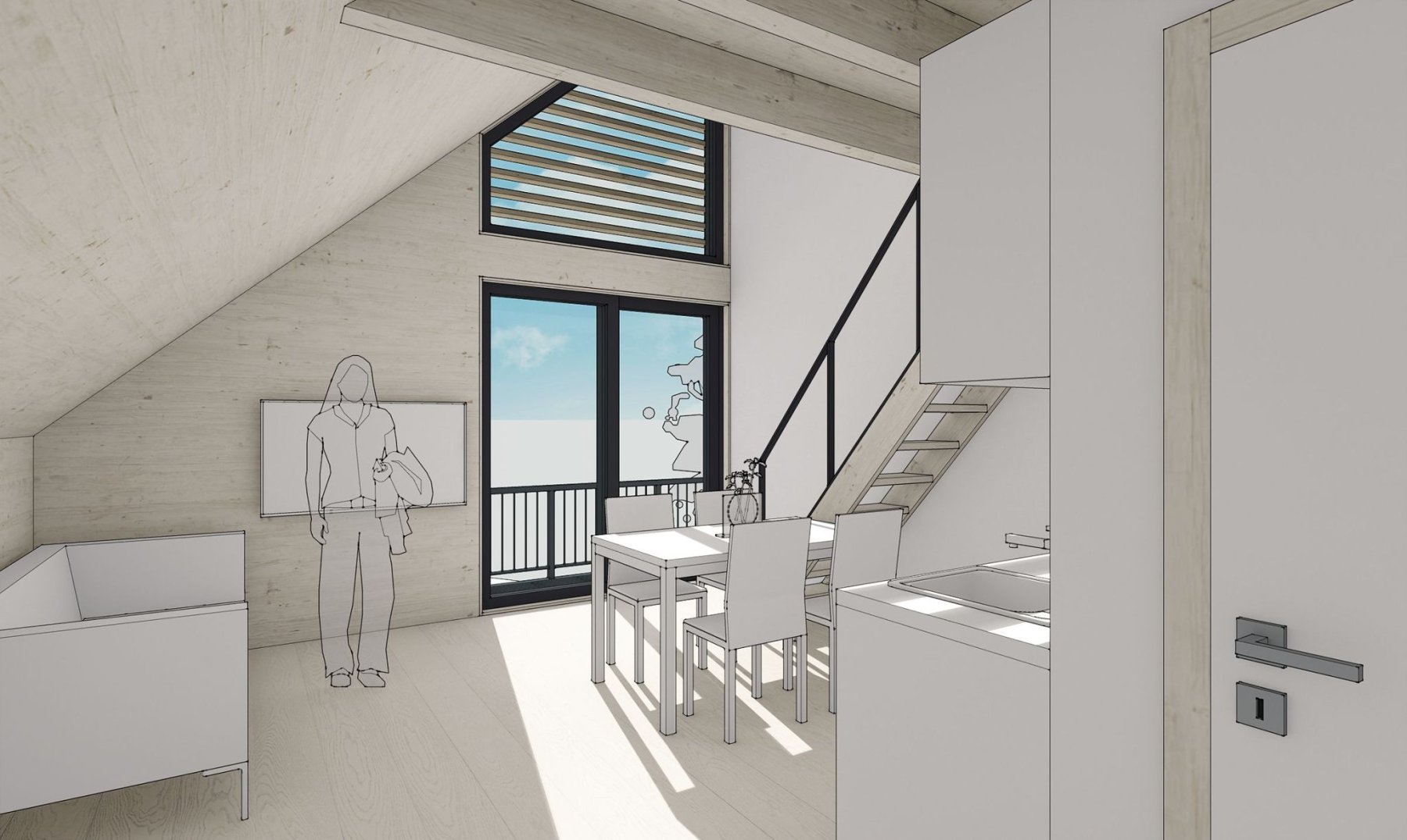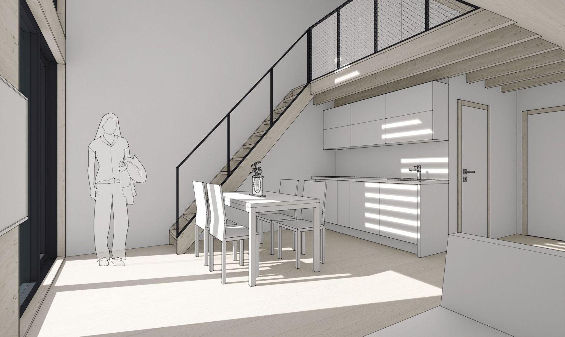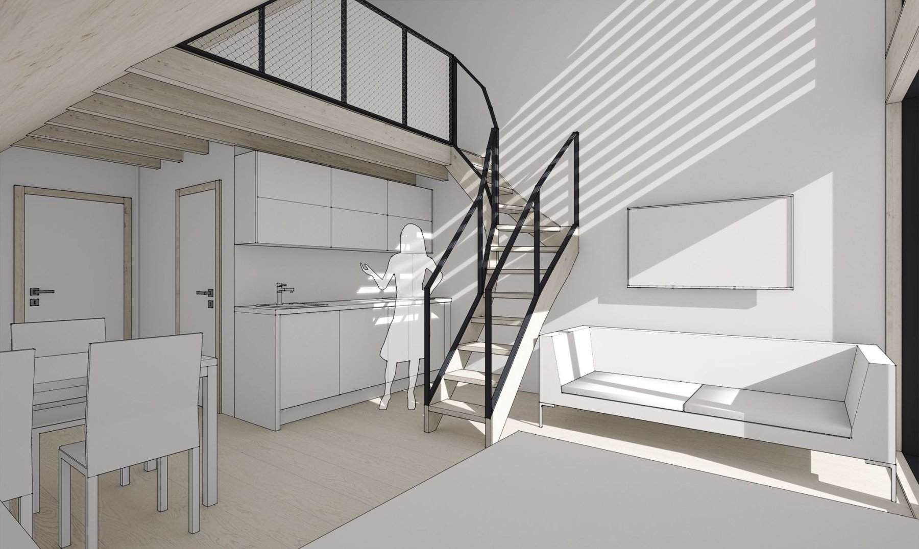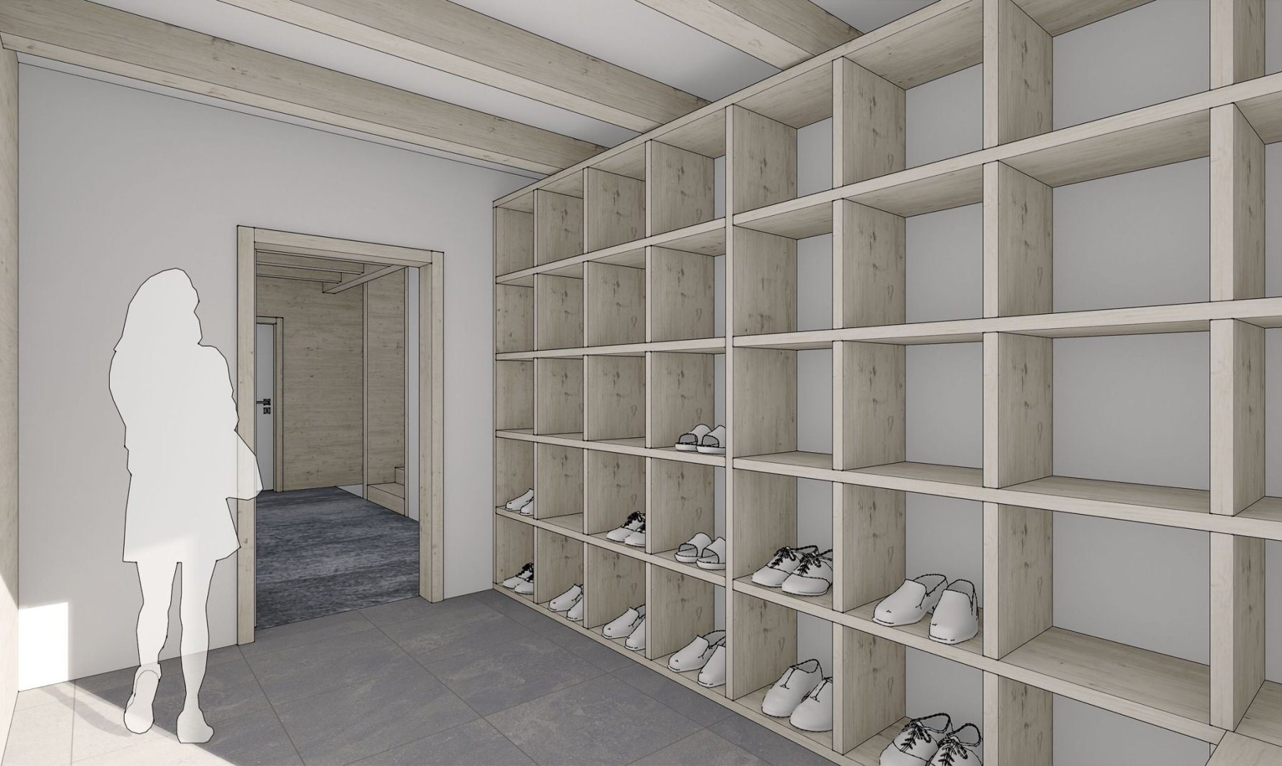 Projekt rodinného domu v Krkonoších byl specifický svým zadáním. Měl sloužit nejen rodině majitelů, ale umožňovat i ubytování hostů a fungovat zároveň jako penzion. Hosté měli mít možnost využívat vnitřní bazén, společenskou místnost, venkovní kryté posezení s krbem i rozlehlou zahradu s krásným výhledem. Vše mělo být vizuálně a funkčně spojeno tak, aby uživatelé měli pocit jednotného areálu, který zapadá do okolní krajiny a maximálně využívá potenciál místa. Vznikla tak studie rodinného domu s krásným i útulným bydlením v přírodě.