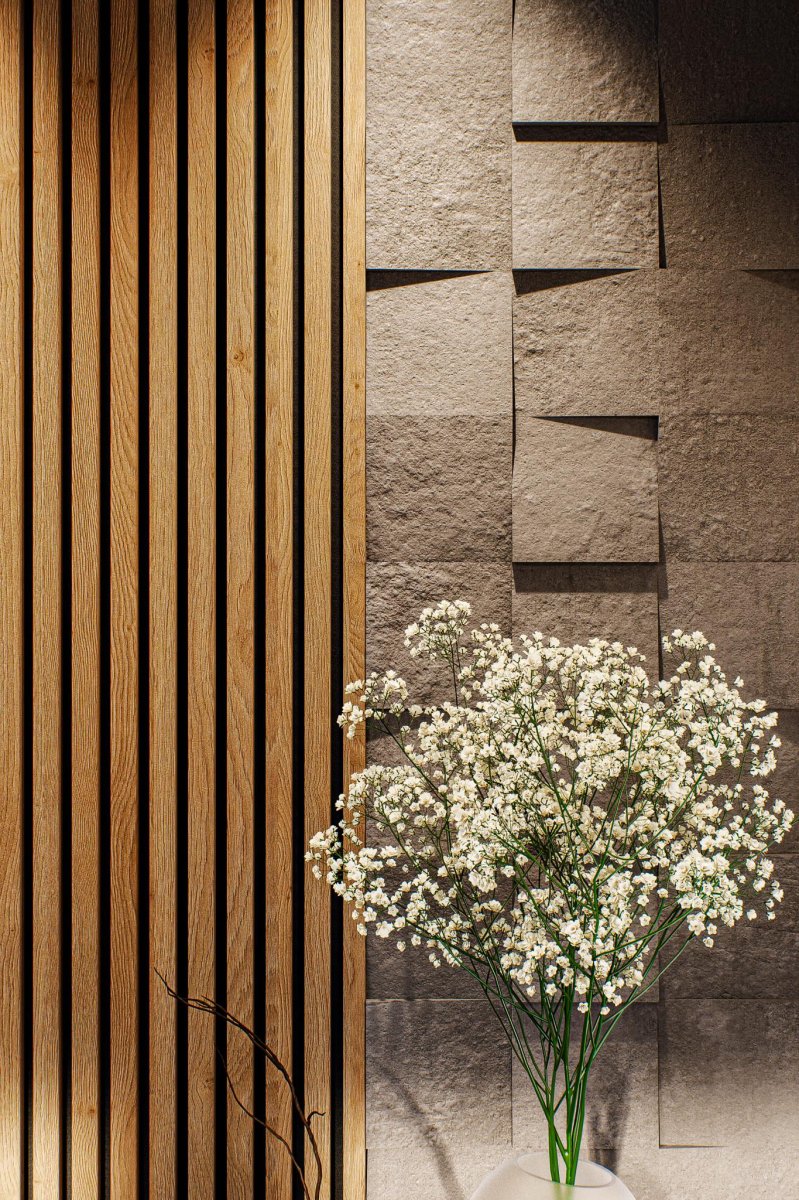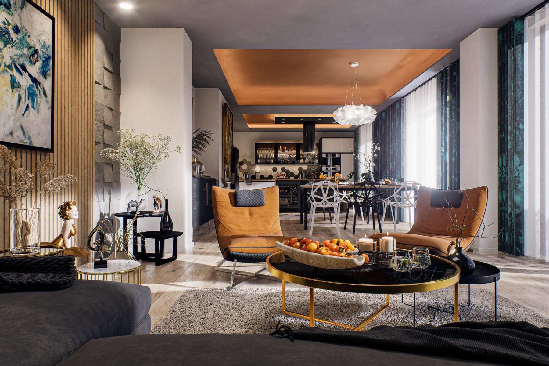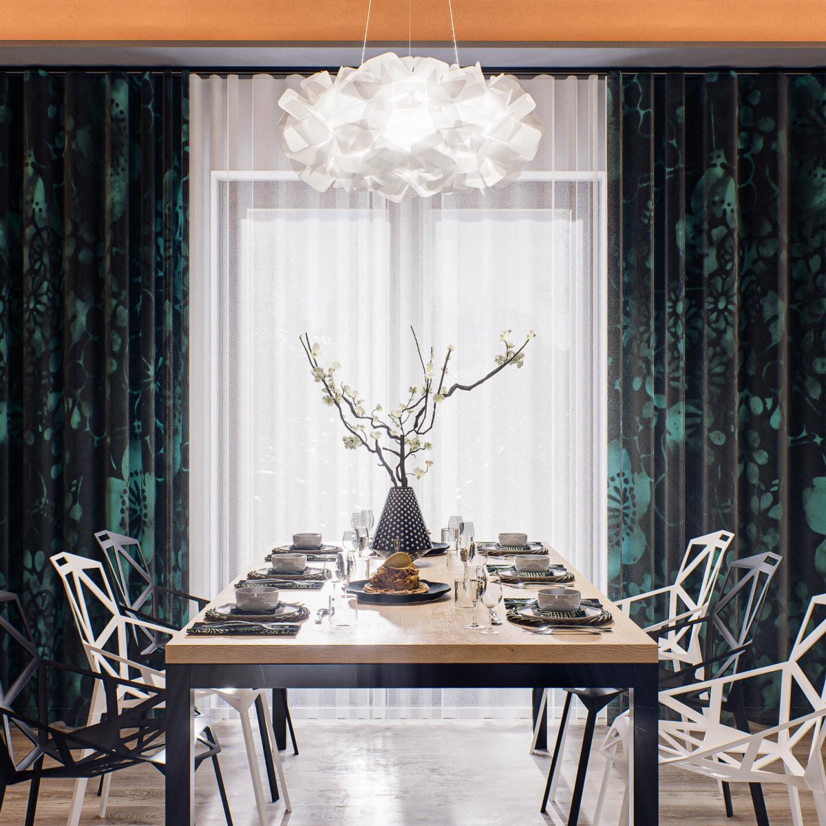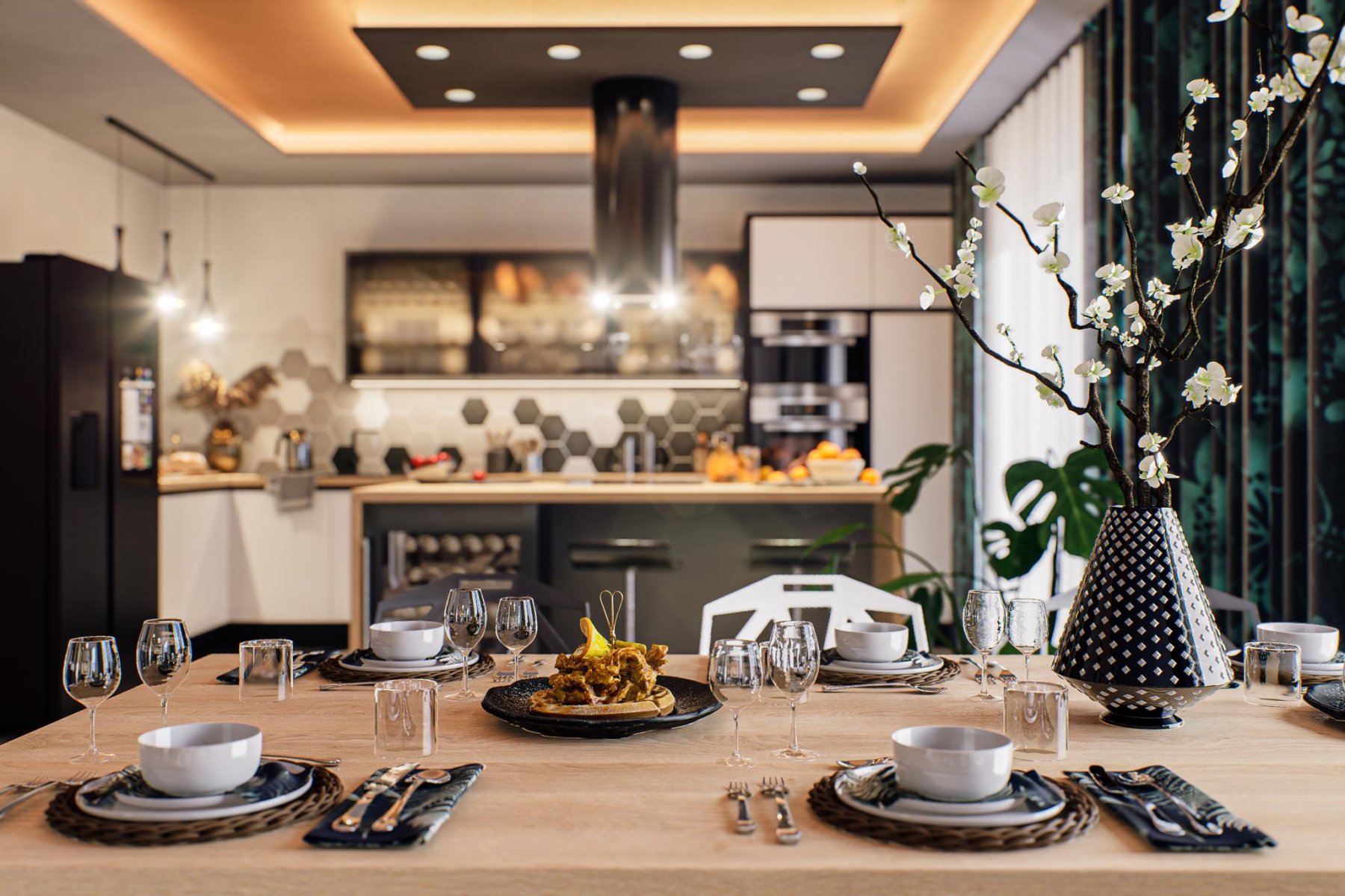 Tento krásný interiér vznikal za milé spolupráce s klientem. Ten nám nechal hodně volnou ruku a tak jsme si návrh nejen užili, ale vznikl díky tomu velmi originální projekt. Majitel je velkým milovníkem umění a tak se plátna stala základem tohoto prostoru. Navázali jsme na ně materiály v přírodních odstínech, které dají dílům nejen vyniknout, ale doplňují je svými texturami a vzory. Podlaha kuchyně ze šestibokých dlaždic přecházejících z antracitové do krémové a později plynule do dřevěné podlahy obývacího pokoje je sama malým uměleckým dílem. Stejné řešení naleznete i v koupelně, a díky tomu celý prostor domu na sebe plynule navazuje. Netradiční výběr povrchů doplňuje moderně řešená kuchyň s ostrůvkem a digestoří v prostoru, jídelní stůl s originálními židlemi a komfortní obývací prostor s pohodlnou sedací soupravou a křeslem. Atmosféra prostoru je dotvořena krásnými závěsy a jak už je naším zvykem také osvětlením. Netradiční závěsná světla, funkční osvětlení obrazů, ale i jemné osvětlení stropními rampami to vše umožňuje dotvoření atmosféry podle aktuální nálady.