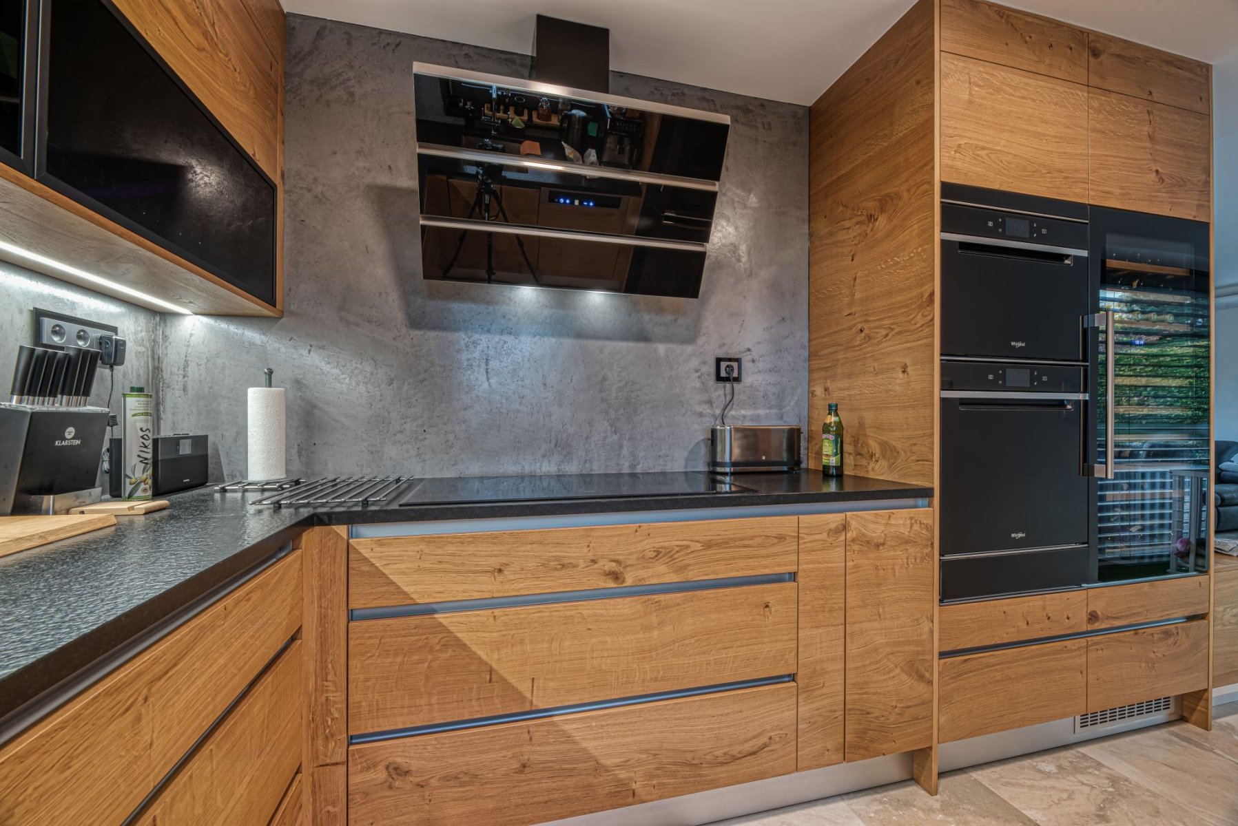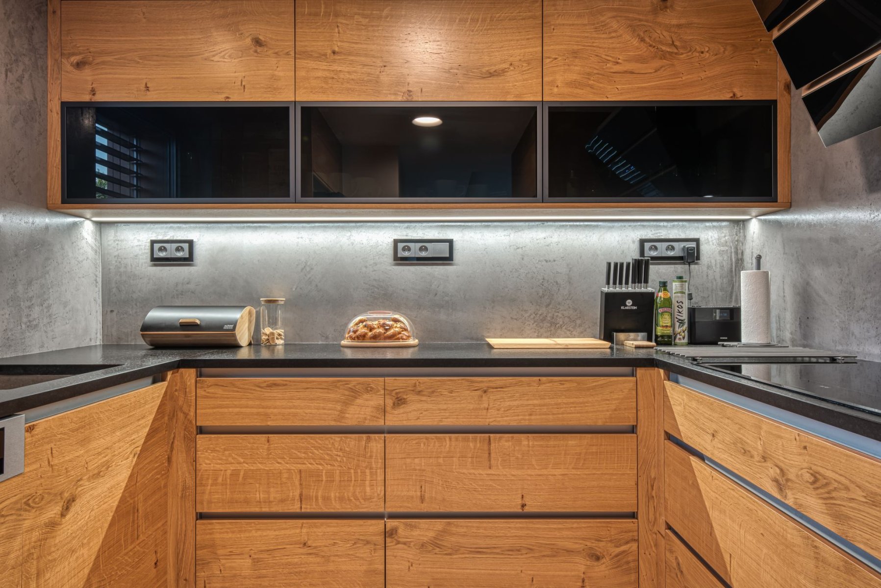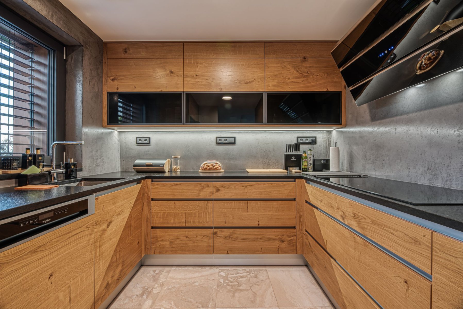 Kuchyň je řešena velmi funkčně s citem pro detaily jako je např. skryté osvětlení