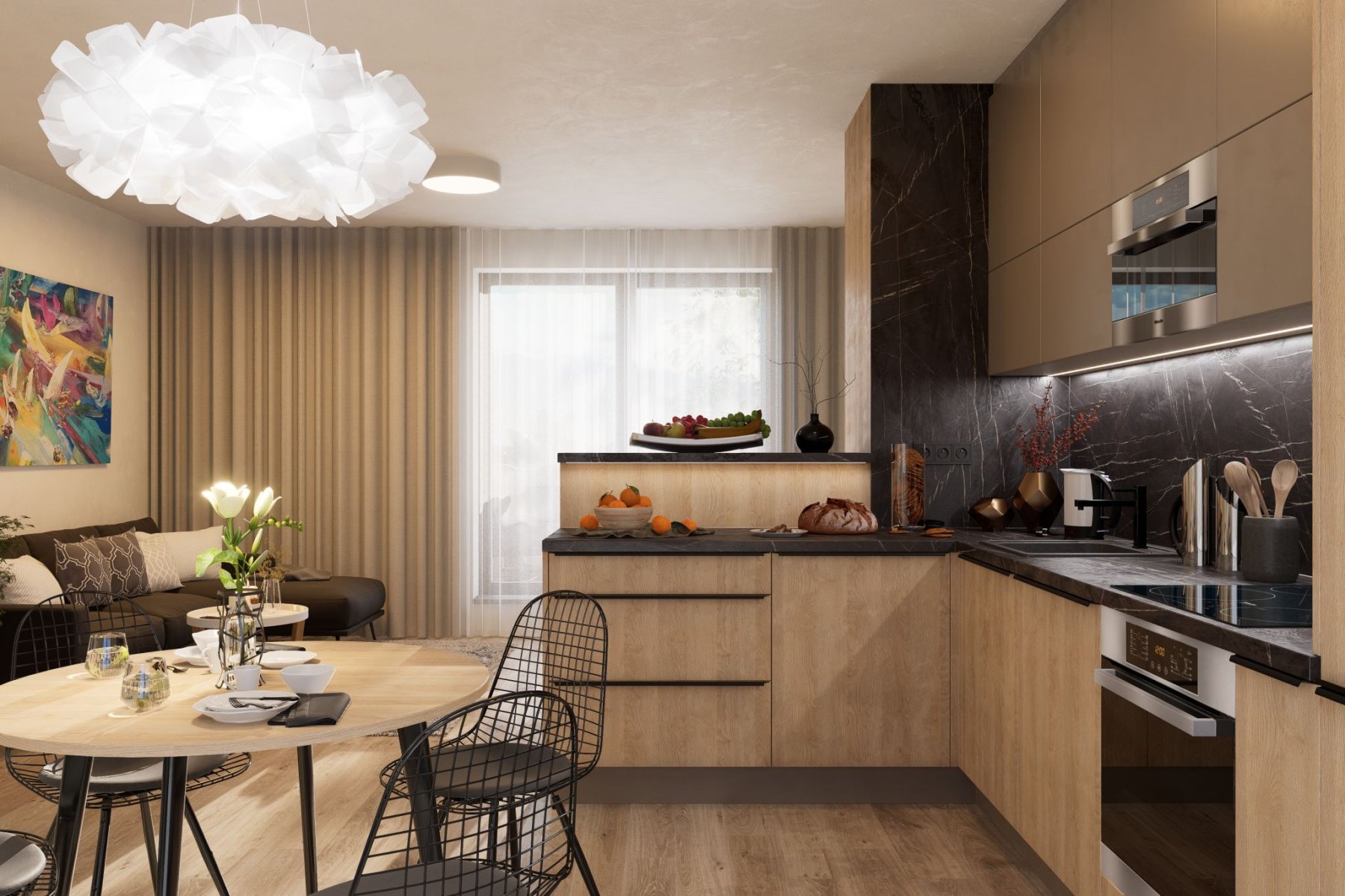 Obývací pokoj s kuchyní