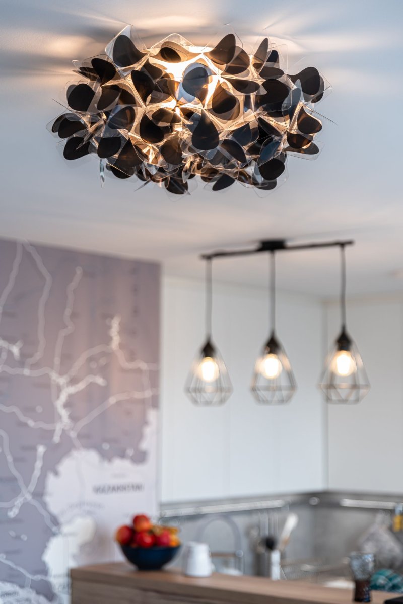 Detail osvětlení obývacího pokoje a kuchyňského ostrůvku
