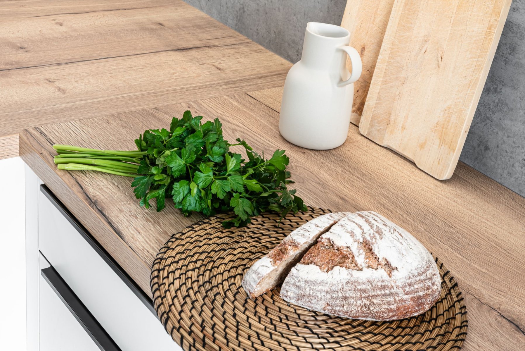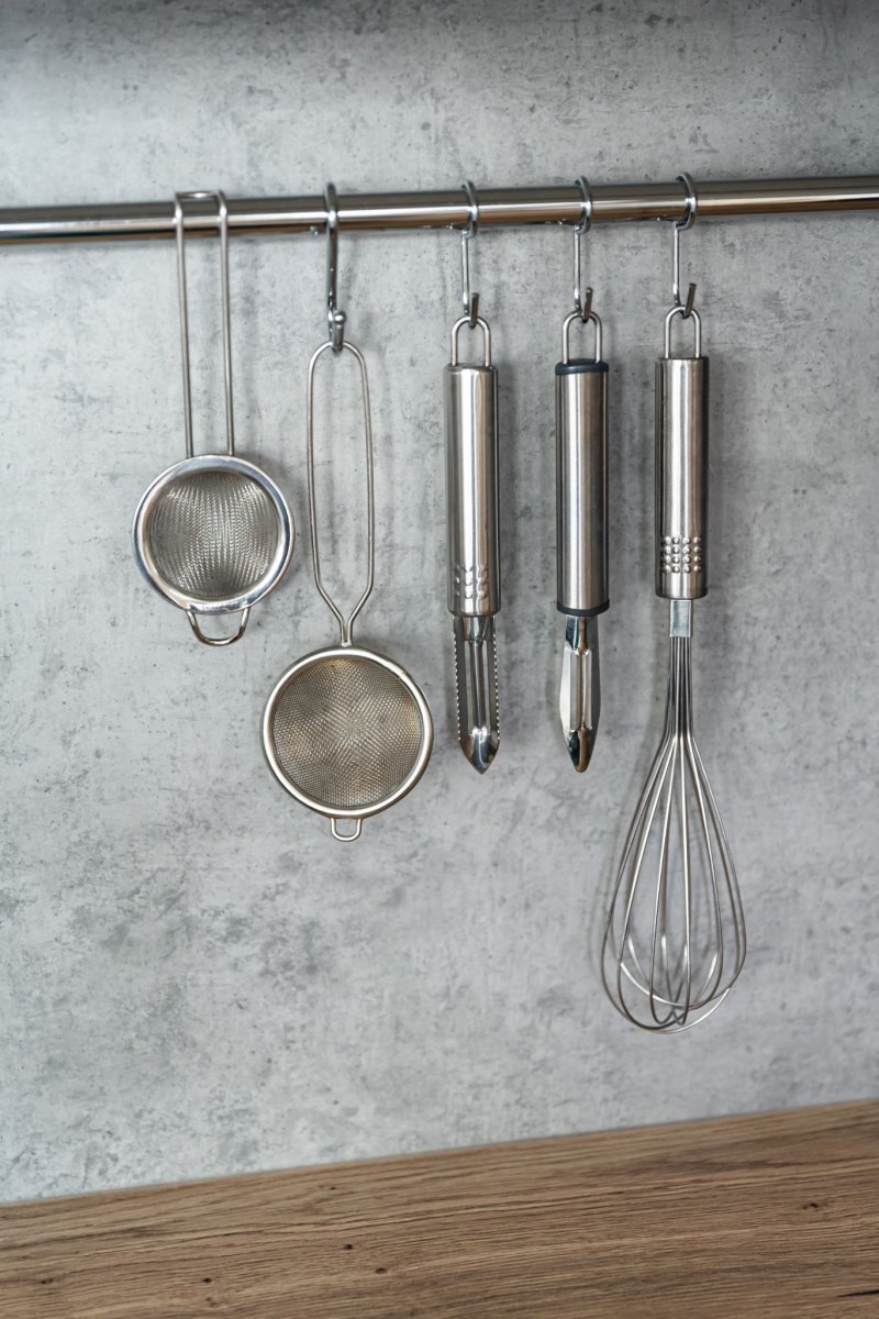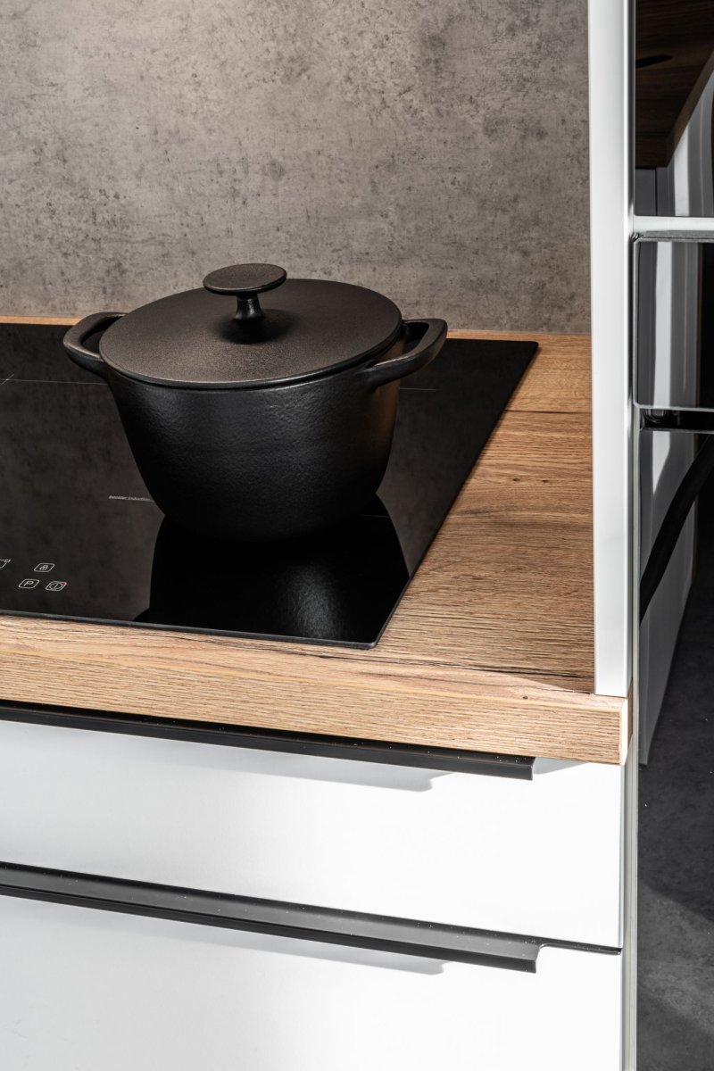 Kuchyňská linka je navržena do detailu. K práci se můžete posadit, napsaný recept pověsit na magnetickou lištu, potřebné kuchyňské náčiní pověsit na nástěnnou lištu...