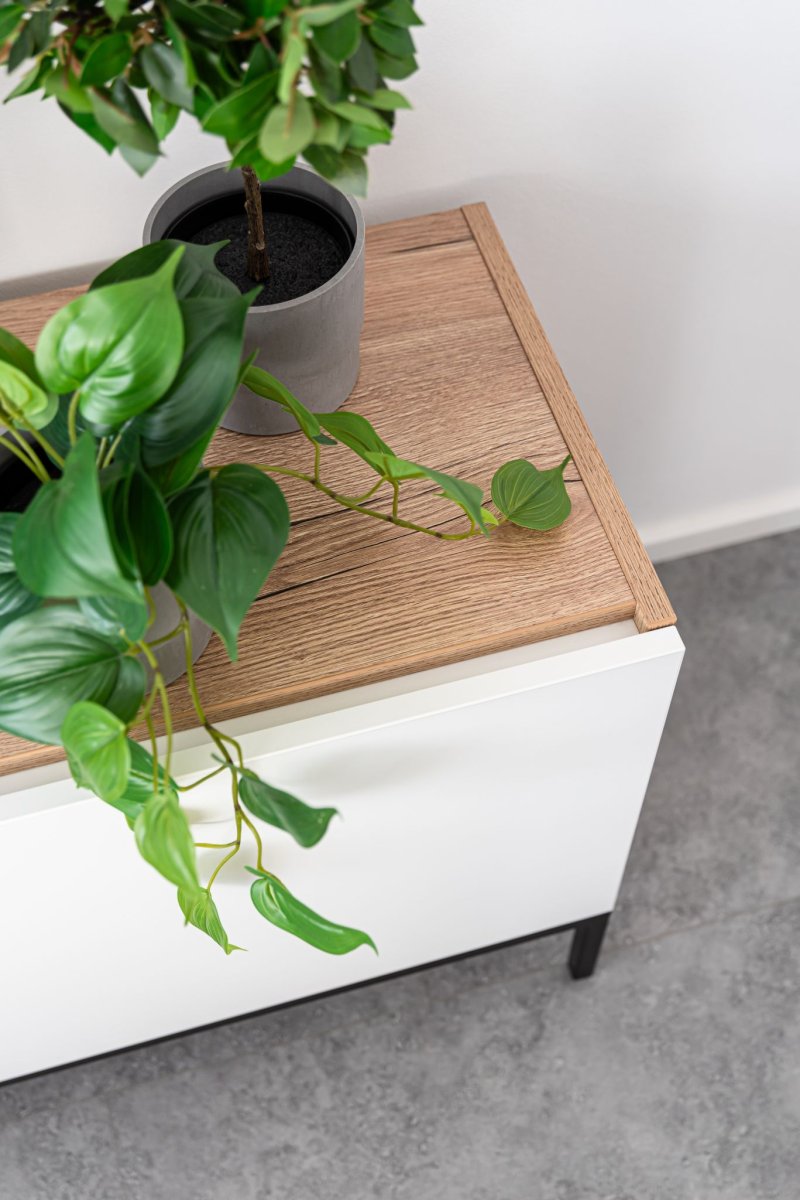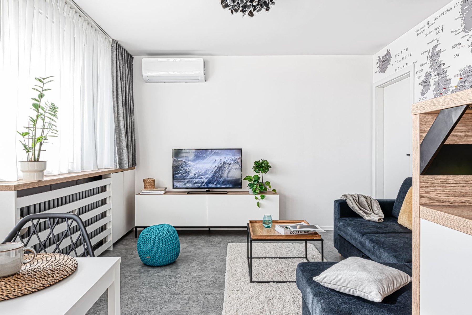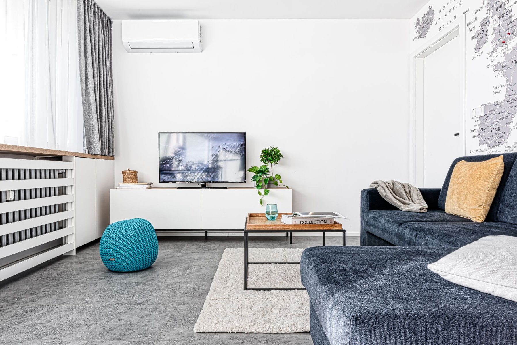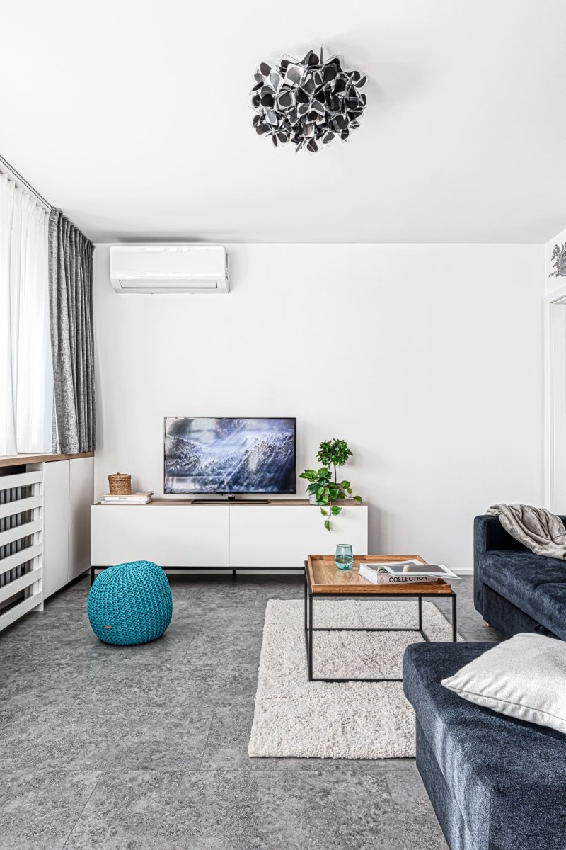 Pod oknem obývacího pokoje jsme vytvořili atypický kryt radiátoru, prostor tak působí čistěji a moderněji.
