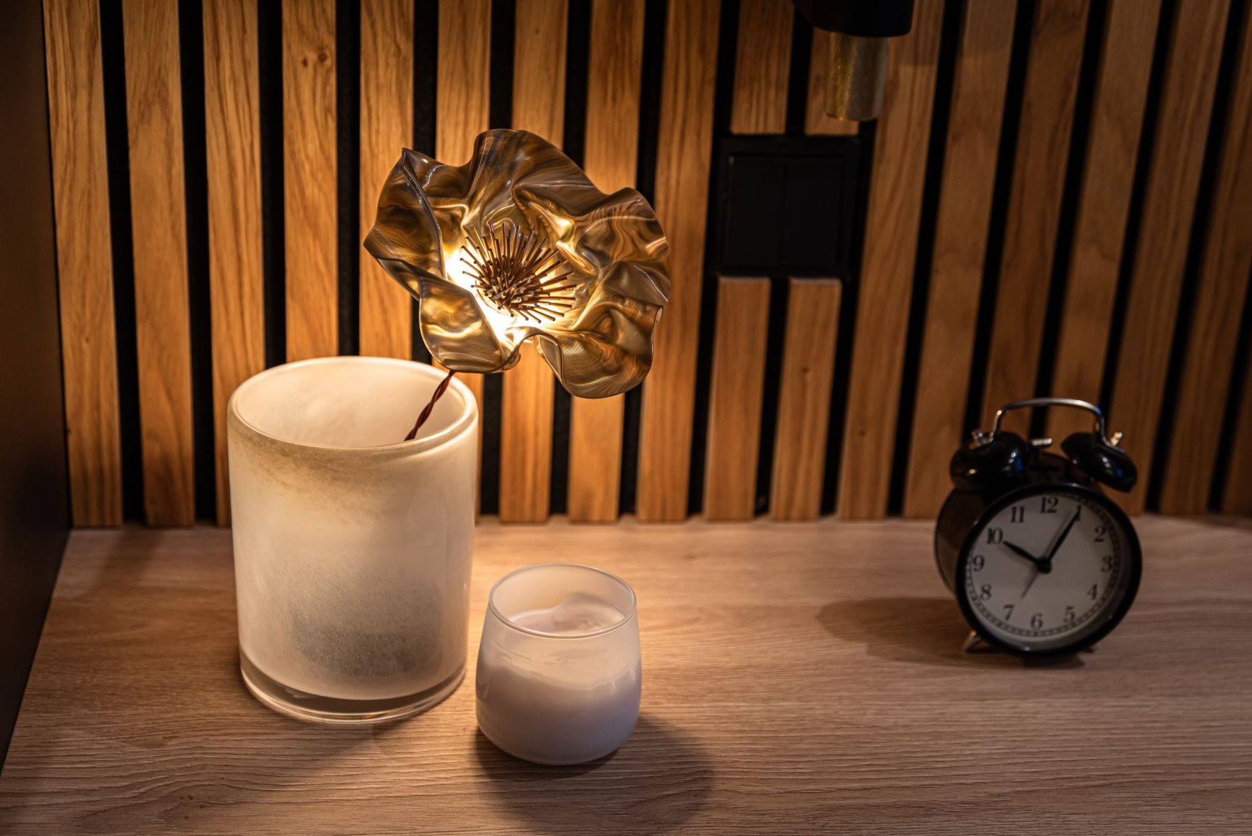 Stejně tak, jako je pomíjivá hudba, tak i světlo se v průběhu času mění a s ním i prostor. Proto jsme se zde snažili zachytit jednotlivé proměny nálad, které může světlo vykouzlit a podtrhnout jemné světelné hry dodávající místu kouzlo a osobitost. Nikdy tak tento byt nenaleznete stejný.