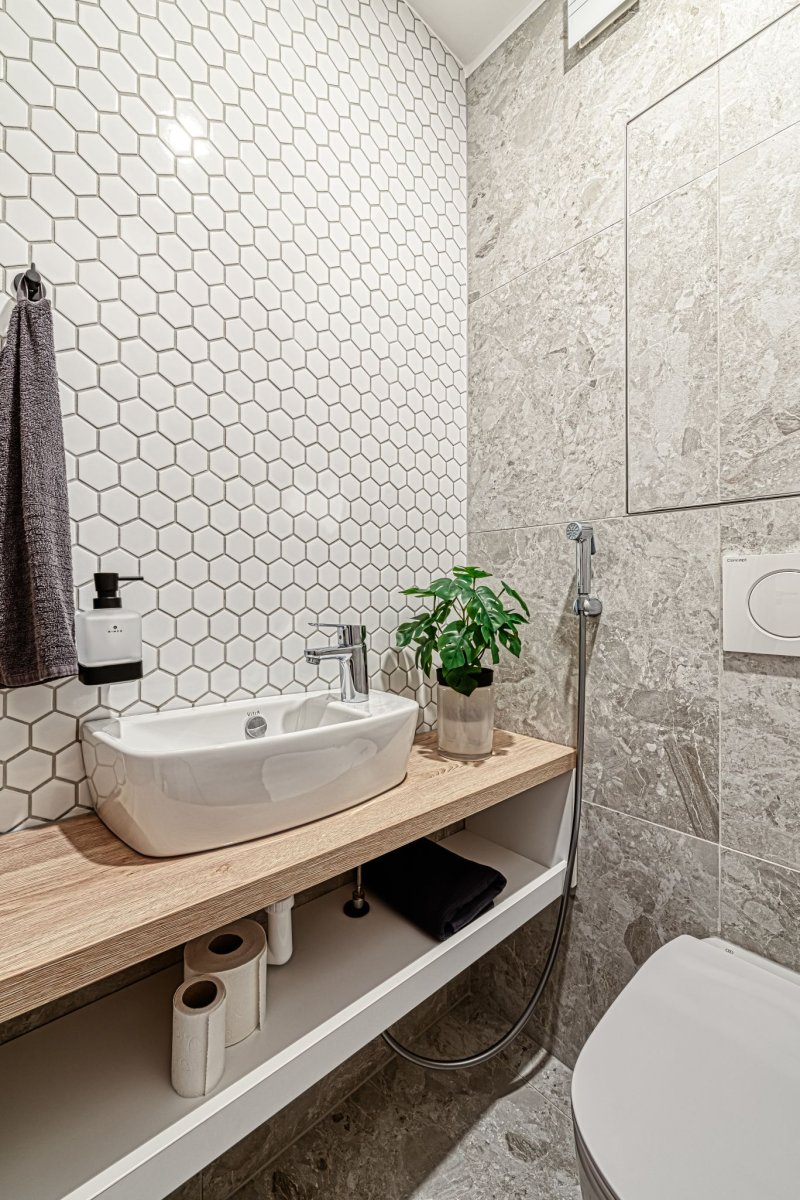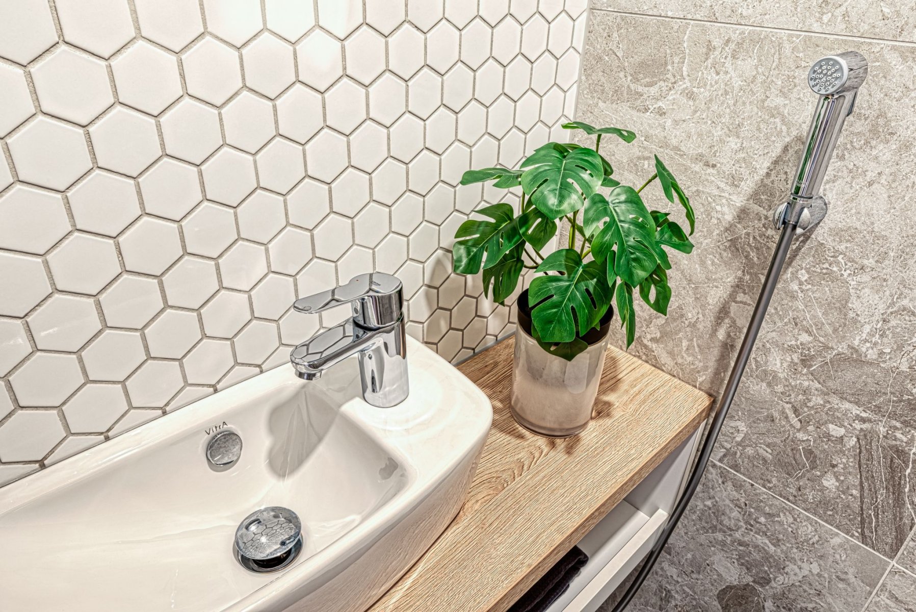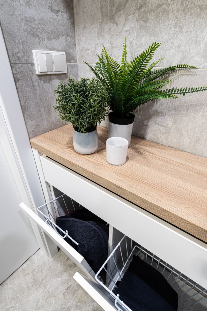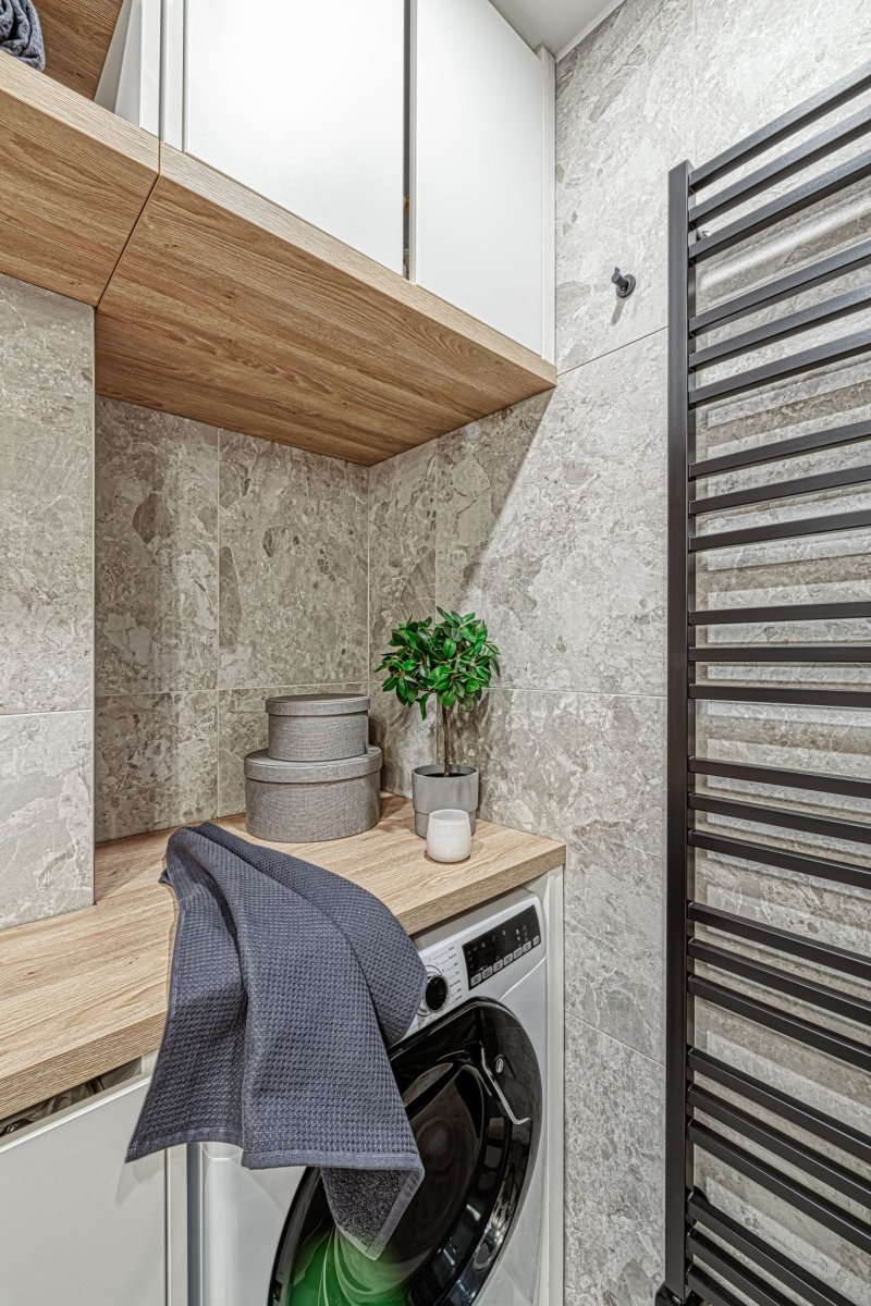 V koupelně jsme promysleli každý centimetr, vše je tu praktické i hezké.
