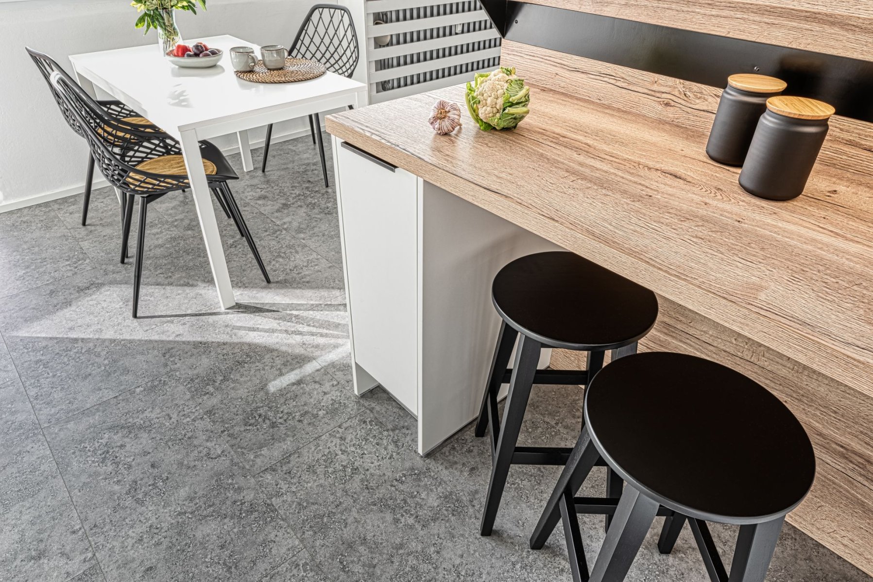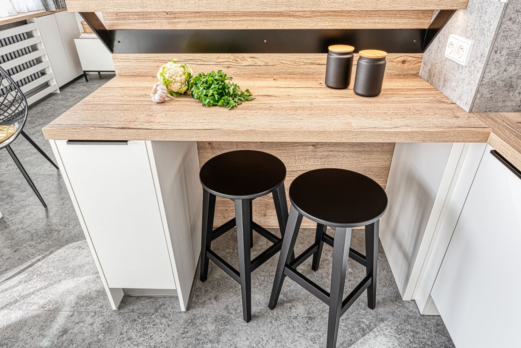 Barové stoličky v kuchyni využijete nejen k pohodlnější práci.